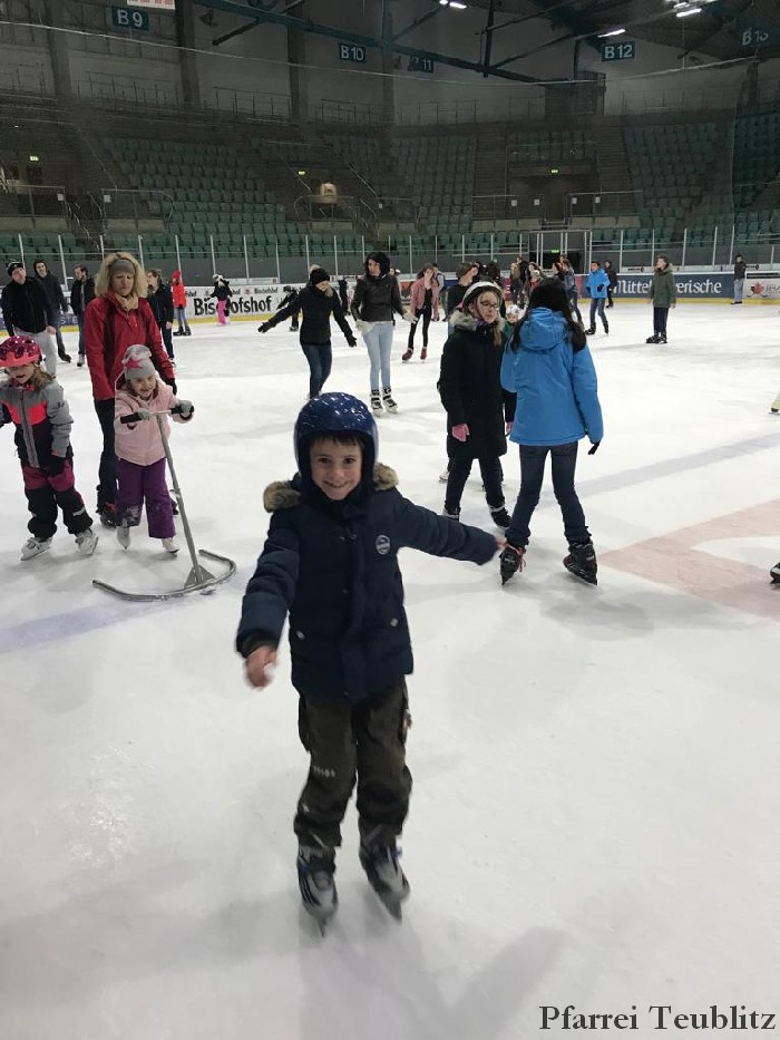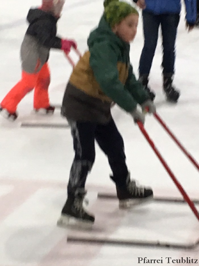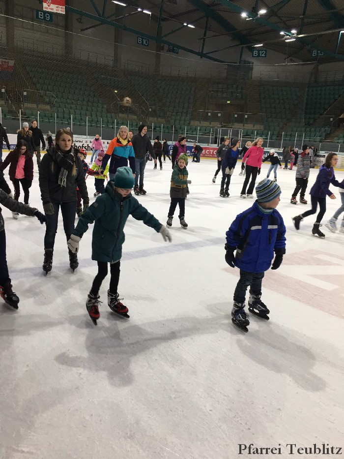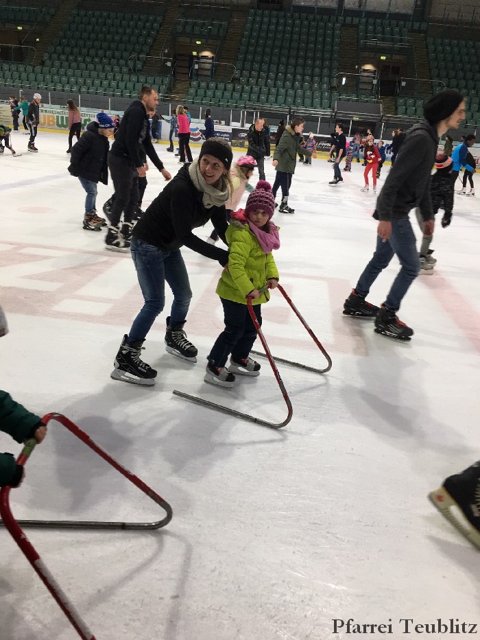 Gleich an zwei Sonntagen war der Familienkreis V sportlich in Regensburg unterwegs. So besuchten die Familien das Eisstadion und so mancher wagte sich zum ersten Mal auf´s Eis. Sogar für die kleine Marie gab es schon Schlittschuhe zum Leihen, doch mit ihren Winterstiefeln fühlte sie sich sichtlich wohler. Die Großen zeigten den Kleineren wie es geht und drehten bei guter Musik so manche flotte Runde um die Halle. In den Pausen gab´s Kekse, Kuchen, Kaffee und Schorle.