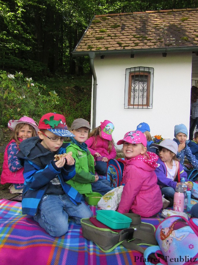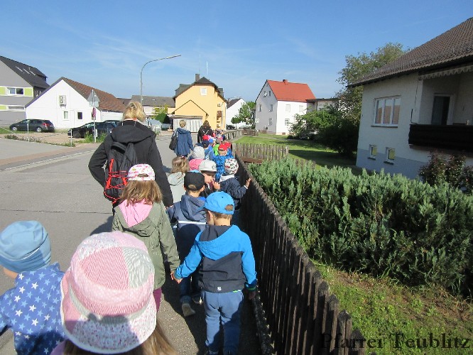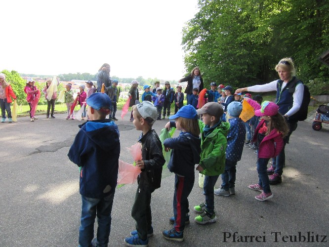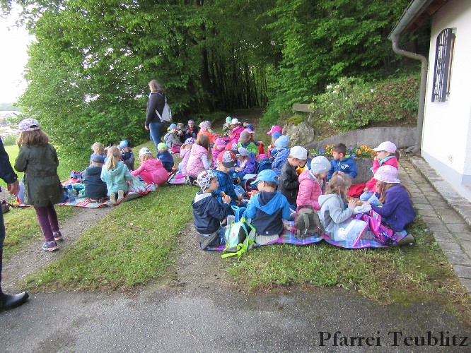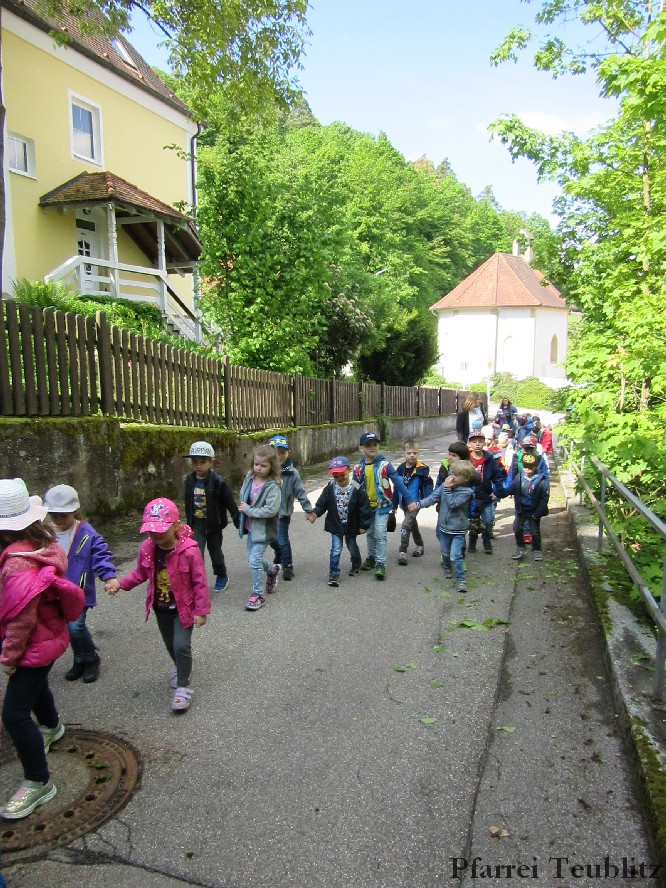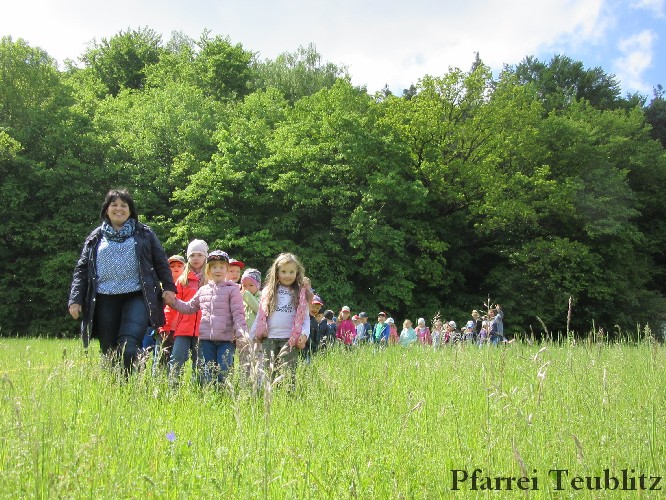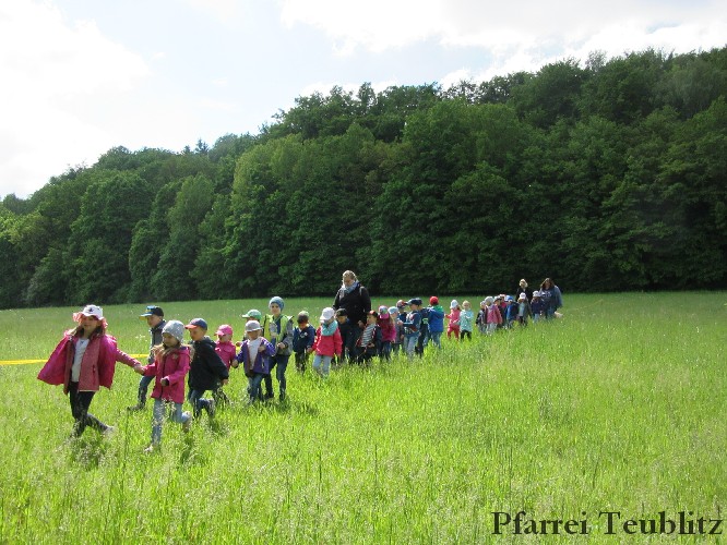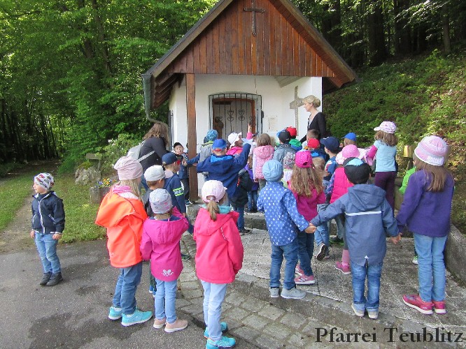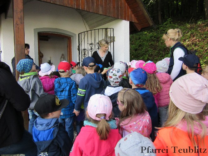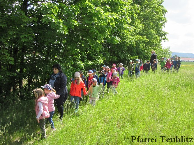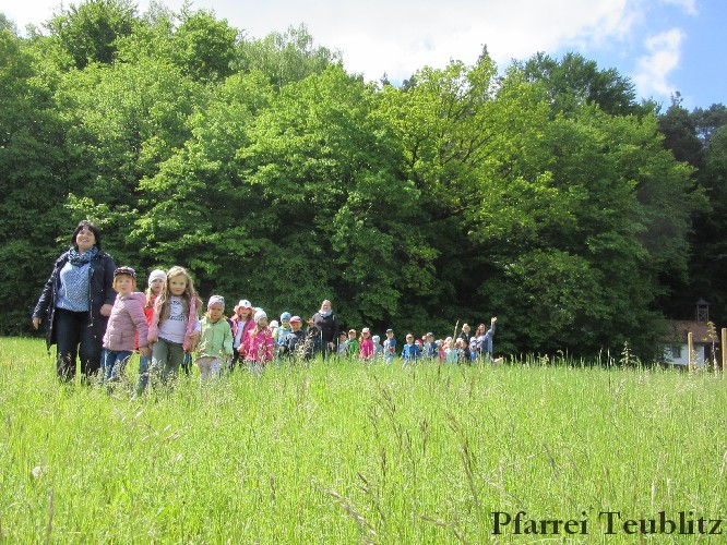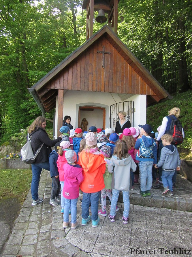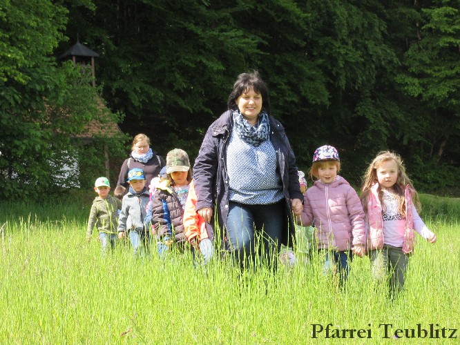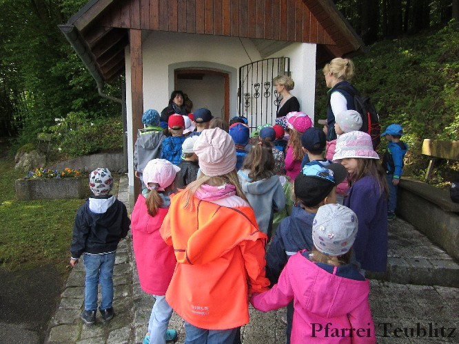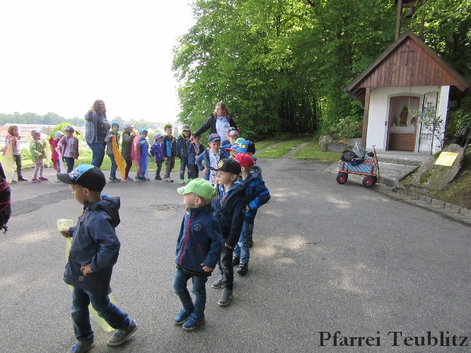 „Mit unseren Gruppennamen verbinden wir Heilige, die in unserer Pfarrgemeinde eine Rolle spielen.“, erklärt Monika Böhm, welche die Gruppe Franziskus leitet. „Auch bringt diese Wallfahrt, noch dazu bei diesem schönen Wetter, eine schöne Abwechslung in den Alltag unserer Kindergartengruppen.“, ergänzt die Leiterin der Gabriel-Gruppe, Andrea Ziechaus, die aktives Mitglied im Franziskus-Kappellen-Verein ist. Ziel des katholischen Kinderhauses Herz Jesu Teublitz ist es, den Kindern ganz natürlich die Botschaft Gottes zu vermitteln und dabei Anknüpfungspunkte in der Umgebung und im Alltag der Kinder zu suchen.