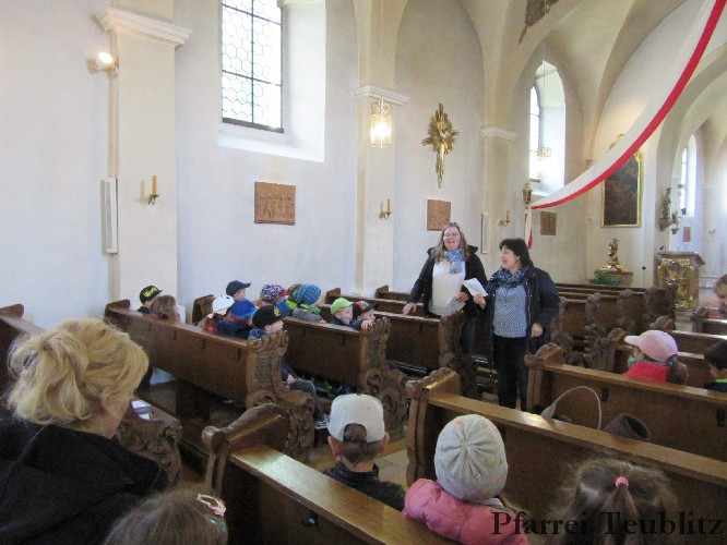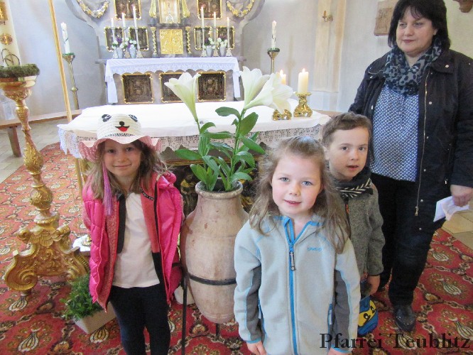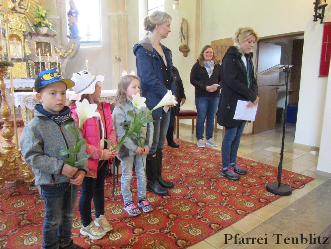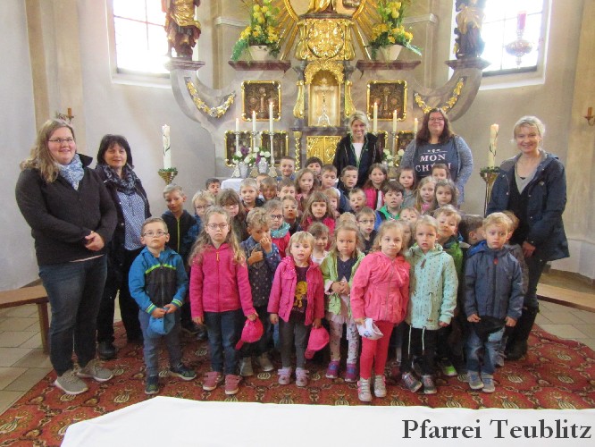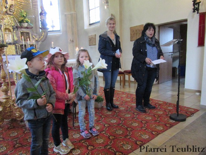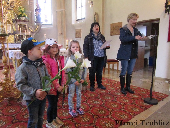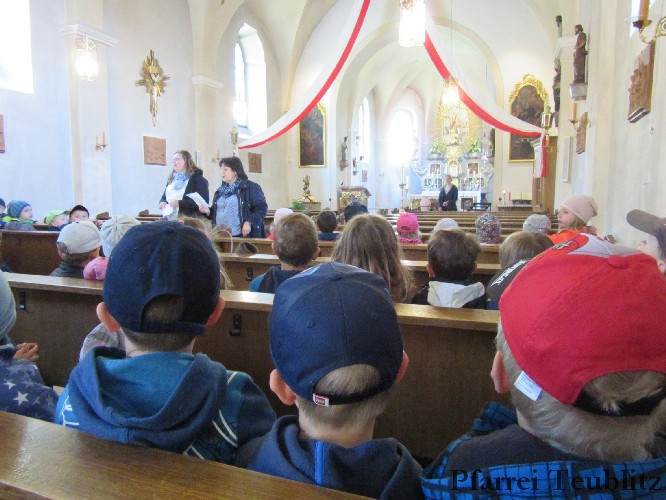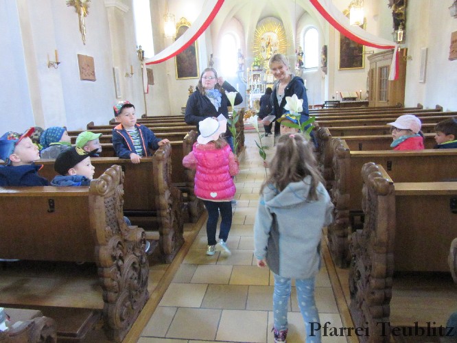 Die Saltendorfer Kirche ist der Mutter Jesu, der heiligen Maria geweiht. Ihr brachten die Kindergartenkinder Blumen dar und beteten zu Jesu-Kind, denn Gottes Sohn ist, wie viele Kindergartenkinder in einer ganz normalen Familie aufgewachsen.