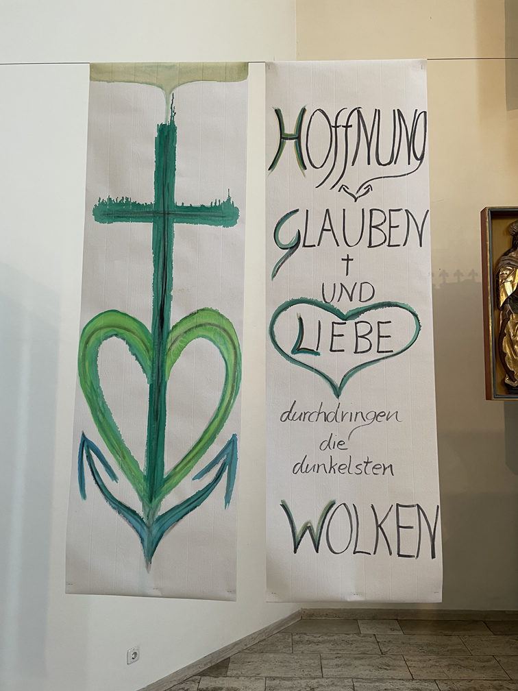 Bilder lieferten unter anderem Gruppen aus dem Kinderhaus Herz Jesu, Eltern-Kind-Gruppen, Ministranten, Eine-Weltladen, Frauenbund, Kolping, DoReMi, PGR und viele kreative Einzelpersonen. Insgesamt kamen 37 Kunstwerke zusammen, die teils noch bis Oktober in der Pfarrkirche besichtigt werden können.