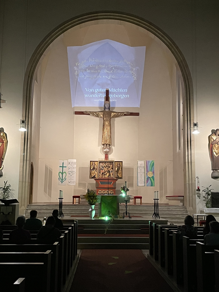 Sehr interessant war auch der Beitrag zu Dietrich Bonhoeffer. Bilder des evangelischen Theologen und das Lied „Von Guten Mächten“ begleiteten den Text, in dem Martina Förster und Harald Hackbarth das Leben und Wirken Bonhoeffers vorstellten.