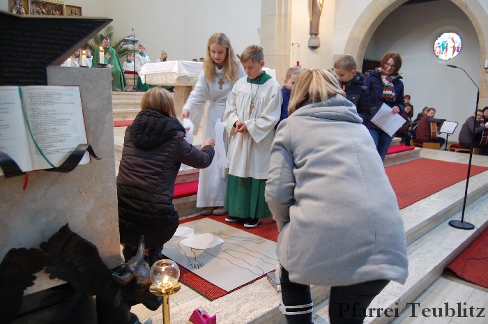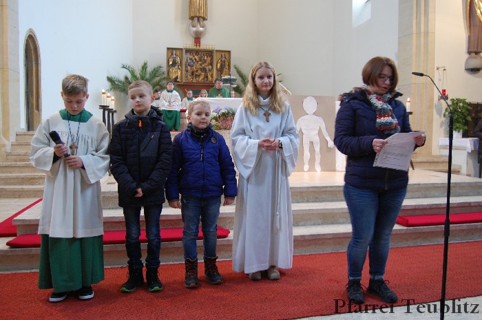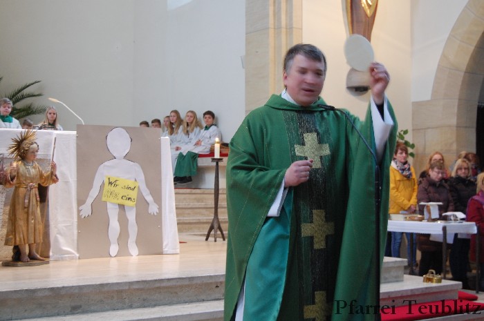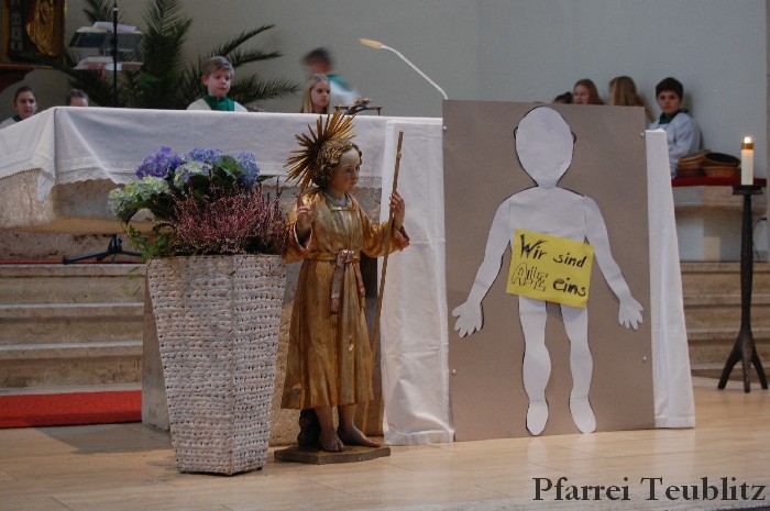 „Wir sind alle ein Leib in Christus – Wir gehören zusammen.“, so lautete das Motto des Familiengottesdienstes. Dabei zeigte das Familiengottesdienstteam auf, wie wichtig es ist, dass man zusammen hält und seine Talente zusammen nützt. Musikalisch wurde der Gottesdienst vom Gemeindechor und der Gitarrengruppe gestaltet.
