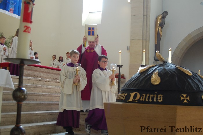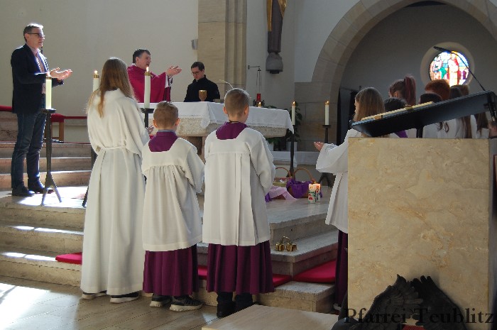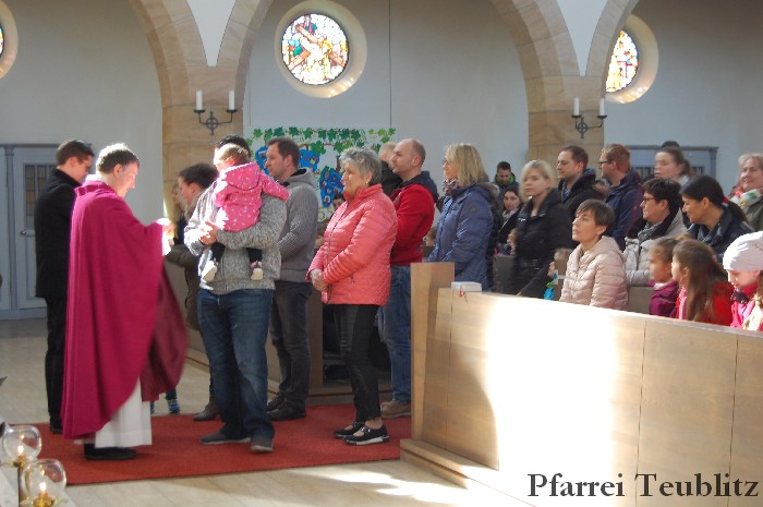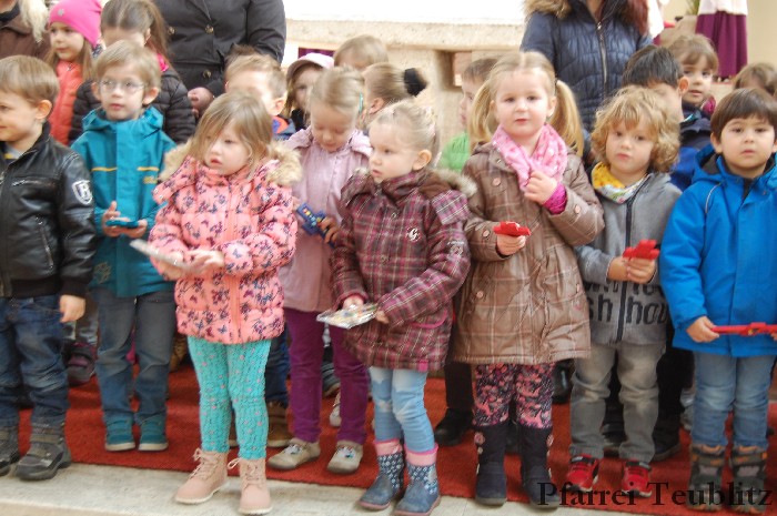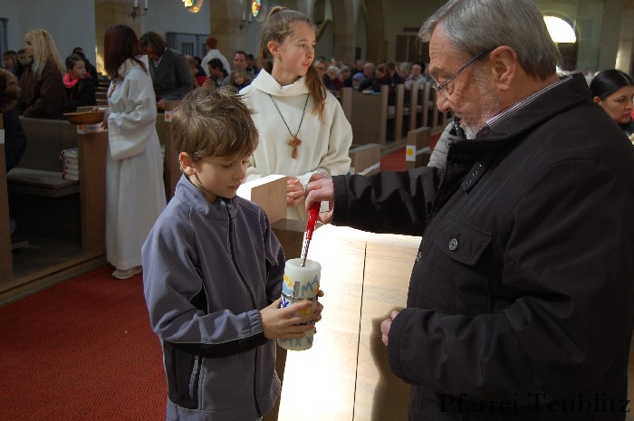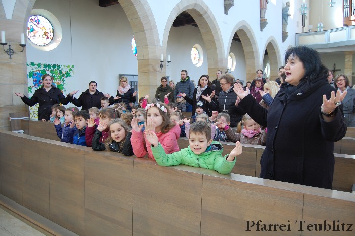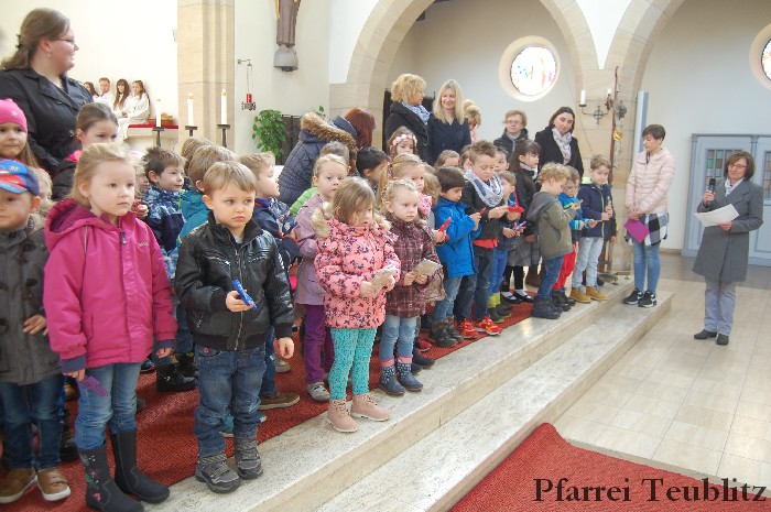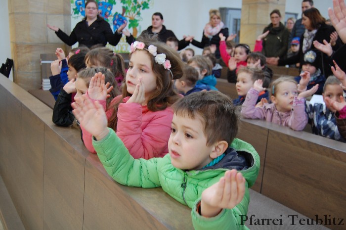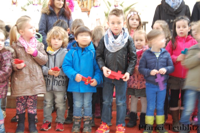 Das Zeichen des Kreuzes steht seit Beginn der Fastenzeit im katholischen Kinderhaus Herz Jesu Teublitz im Mittelpunkt. In den letzten Tagen haben die Kinder ihr ganz persönliches Kreuz aus Mosaiksteinen gebastelt. „Jedes Kind konnte seine Farben und Muster selbst wählen.“, erklärte Erzieherin Andrea Ziechaus beim letzten Familiengottesdienst in der Pfarrkirche, warum die vielen Kreuze so bunt geworden sind.