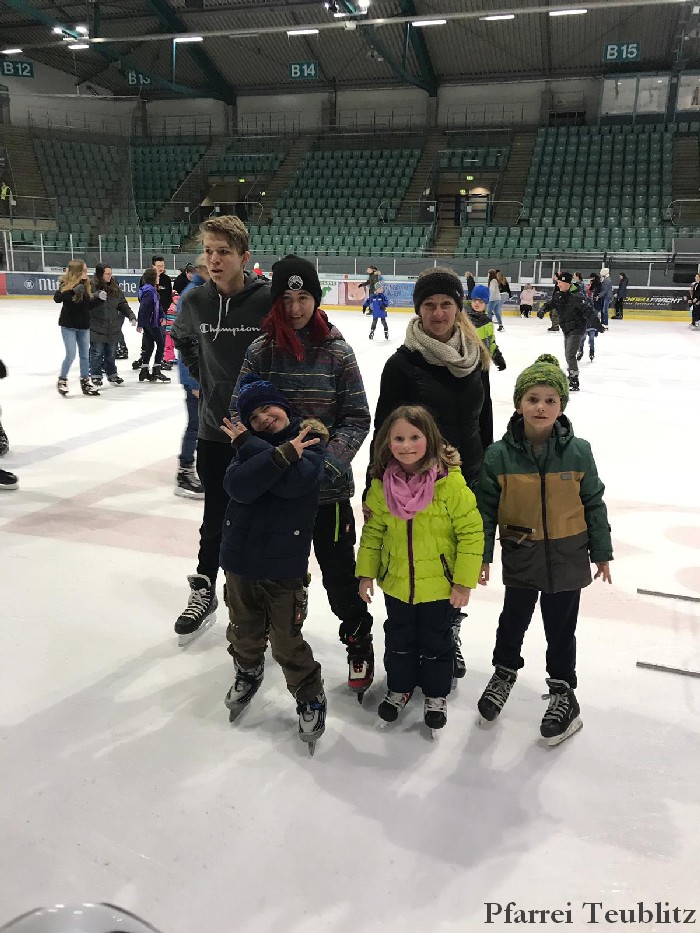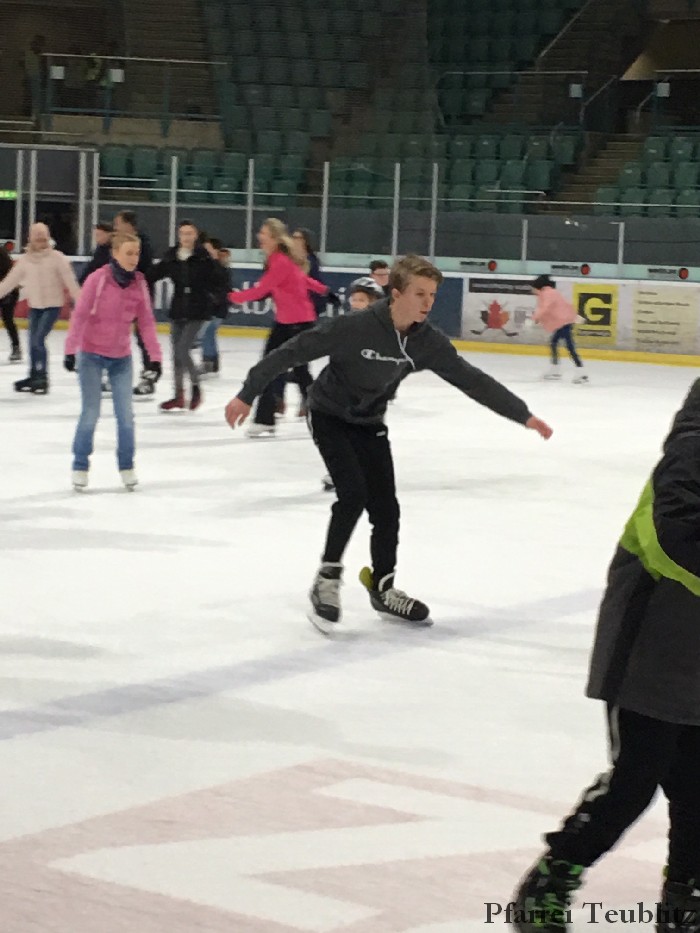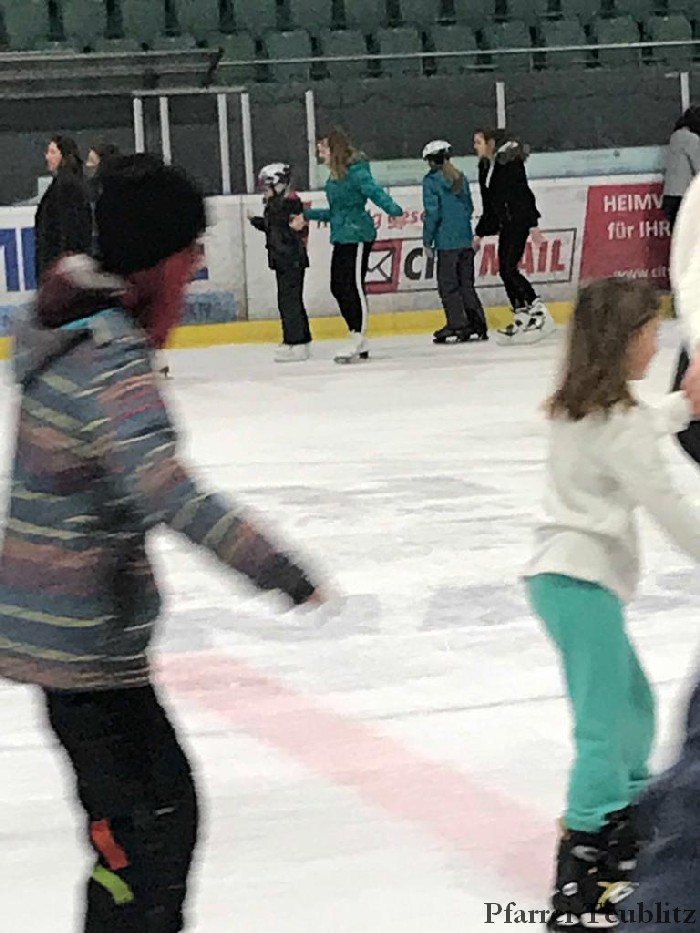 Gleich an zwei Sonntagen war der Familienkreis V sportlich in Regensburg unterwegs. So besuchten die Familien das Eisstadion und so mancher wagte sich zum ersten Mal auf´s Eis. Sogar für die kleine Marie gab es schon Schlittschuhe zum Leihen, doch mit ihren Winterstiefeln fühlte sie sich sichtlich wohler. Die Großen zeigten den Kleineren wie es geht und drehten bei guter Musik so manche flotte Runde um die Halle. In den Pausen gab´s Kekse, Kuchen, Kaffee und Schorle.