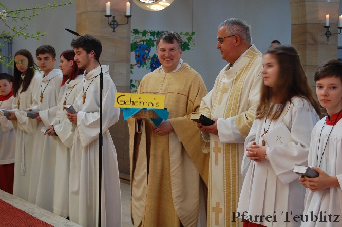 Einem ganz besonderen Geheimnis waren die Mitfeiernden des Ostermontags-Gottesdienstes auf der Spur: Dem Geheimnis des Glaubens! – Musikalisch gestaltet wurde der Gottesdienst von der Gruppe DoReMi, die Gospel sang. – Was es mit dem Geheimnis auf sich hat … siehe unten: