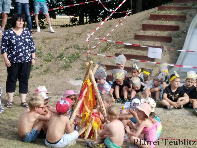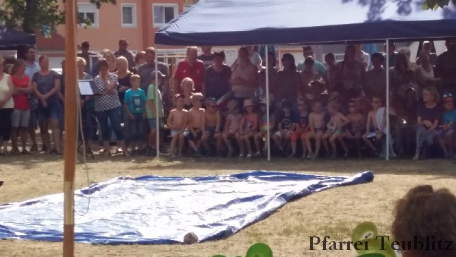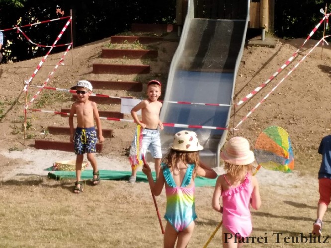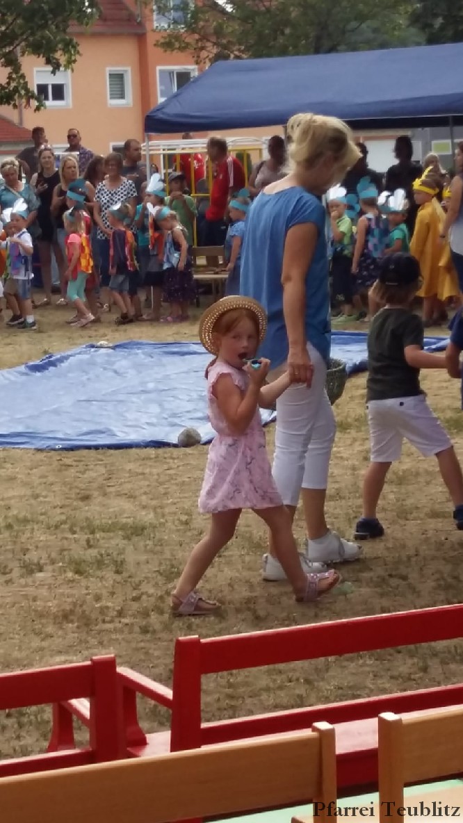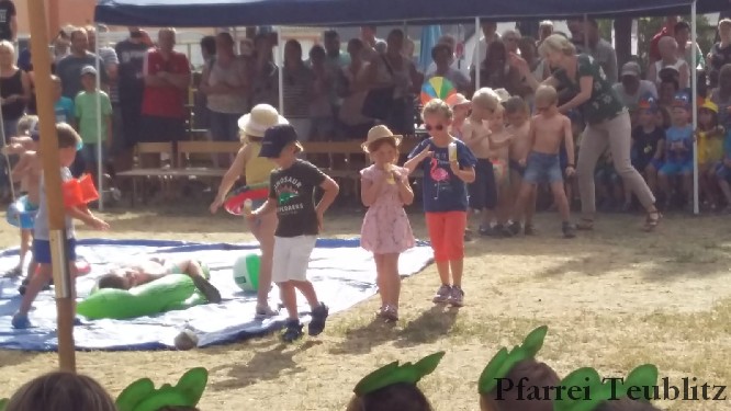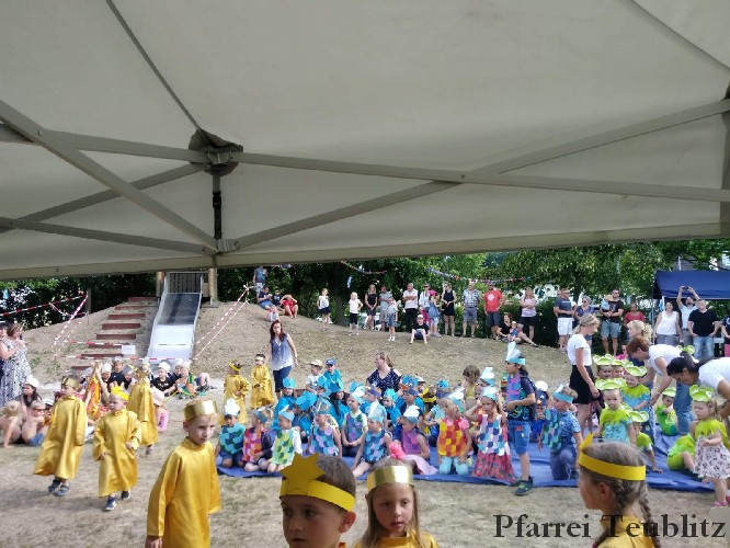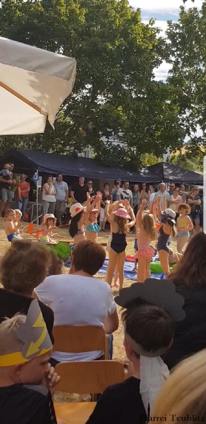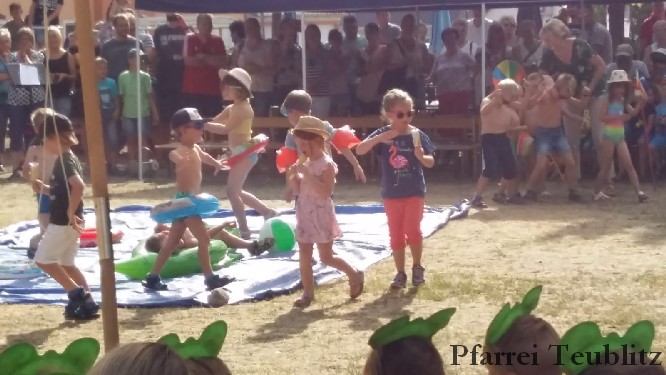 Mit einem „Tag am See“ erfreute das Kinderhaus Herz Jesu Teublitz die Eltern, Großeltern und Freude beim alljährlichen Sommerfest. Dabei hatten sich die Kindergärtnerinnen mit den Kinder etwas Besonderes einfallen lassen. Denn mit spielerischen und gestalterischen Elementen wurde den über 300 Gästen ein lauer Sommertag präsentiert.