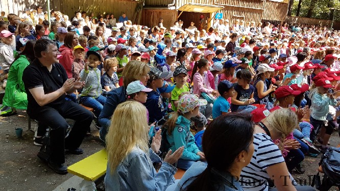 Nachdem für die „kleine Hexe“ alles gut ausgegangen war, bedankten sich die Kinder bei den Schauspielern mit großem Szenenapplaus. Die „kleine Hexe“ und der „Rabe Abraxas“ waren zur Erinnerung noch bereit mit Teublitzern ein Gruppenfoto zu machen. Gut gelaunt und mit vielen neuen Eindrücken wurde die Heimreise angetreten. Auf der Rückfahrt wurde im Bus viel über die kleine Hexe gesprochen. Zu Hause angekommen berichteten die Vorschulkindern, den Eltern und den anderen Kindern von diesem wunderschönen Tag im Waldtheater.