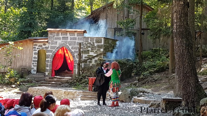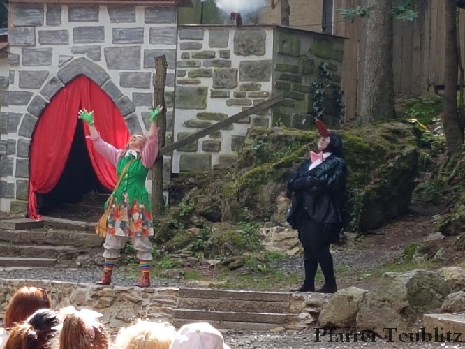 Als alle Kinder im Waldtheater Platz genommen hatten, wurde zünftig Brotzeit gemacht. Kurze Zeit später begann bereits die Aufführung. Die Schauspieler zogen die Kinderschar sofort in Ihren Bann. Spezialeffekte wie Konfetti- oder Glitzerregen, Rauch und Feuer wurden von den Kindern begeistert aufgenommen.
