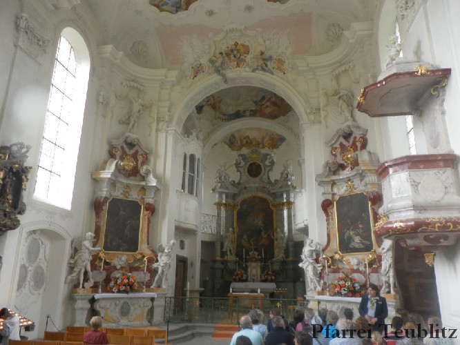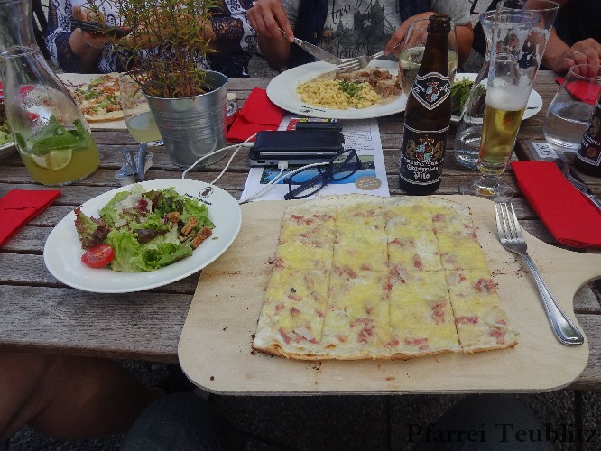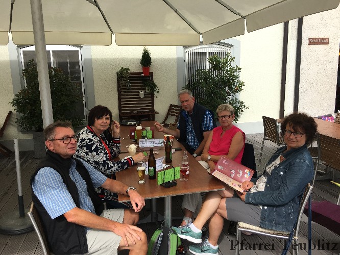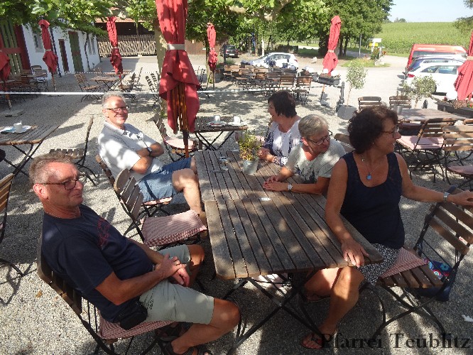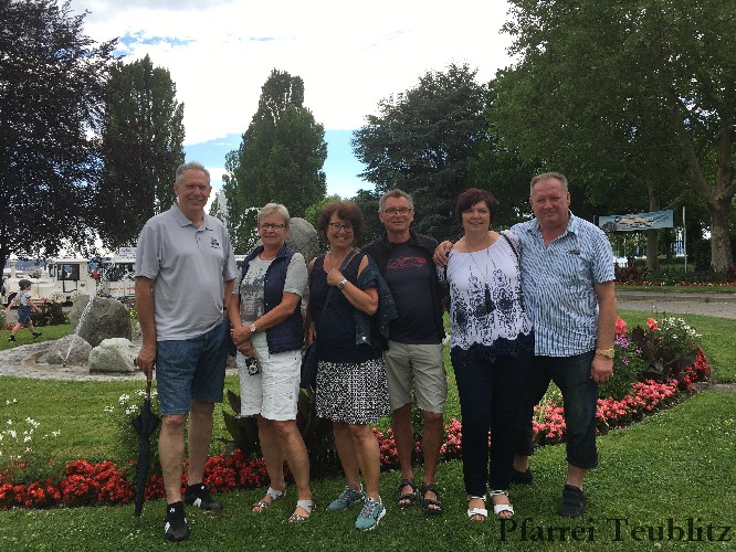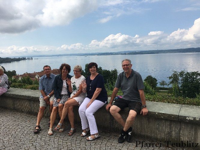 Der Familienkreis I der Kolpingfamilie Teublitz machte seinen diesjährigen 4-Tagesurlaub an den wunderschönen Bodensee. Auf dem Weg nach Singen, wo sich das Hotel befand, wurde Halt in Überlingen gemacht. Hier gab es ganz alte Holzbauten auf Pfählen im Bodensee zu bestaunen. Nach einem Rundgang im Dorf, ging es weiter zu einer urigen Besenwirtschaft. Gemütlich wie diese Wirtschaft eingerichtet war, fühlten sich die Mitglieder des ältesten Teubitzer Familienkreises sehr wohl. Auch ein lokaler Laden lud zum Bummeln und Einkaufen ein. Zum Abendessen ging es in ein Weingut, welches sich auf einer Anhöhe mit einem tollen Ausblick über den See erhob. Die Wallfahrtskirche in Birnau, direkt am See lud zum geistigen Impuls ein. Danach machten sich die Teublitzer auf den Weg zum Hotel. Ein Rundgang durch Singen beendete den ersten Tag.