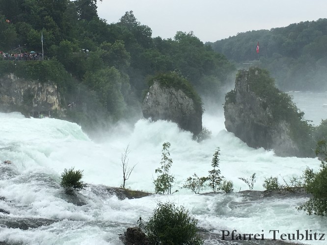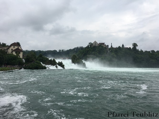Am dritten Tag ging es in die Schweiz nach Stein am Rhein. Die schönen Fachwerkhäuser und netten Geschäfte luden zu einem Spaziergang ein. Von dort aus ging es mit dem Schiff nach Schaffhausen und mit einer kleinen Bimmelbahn zum Rheinfall, der alle Reisenden über die Kraft des Wassers staunen ließ. Ganz bewegt von der Naturschönheit ging es wieder nach Stein und zum Hotel zurück.