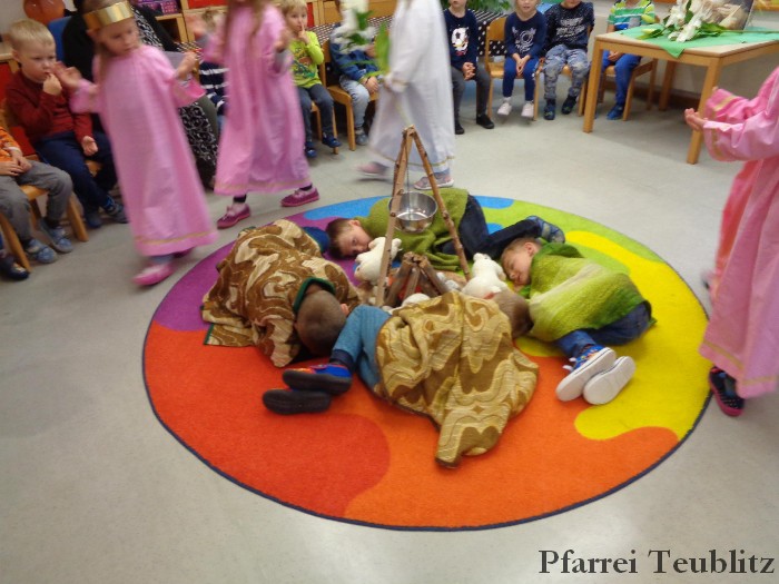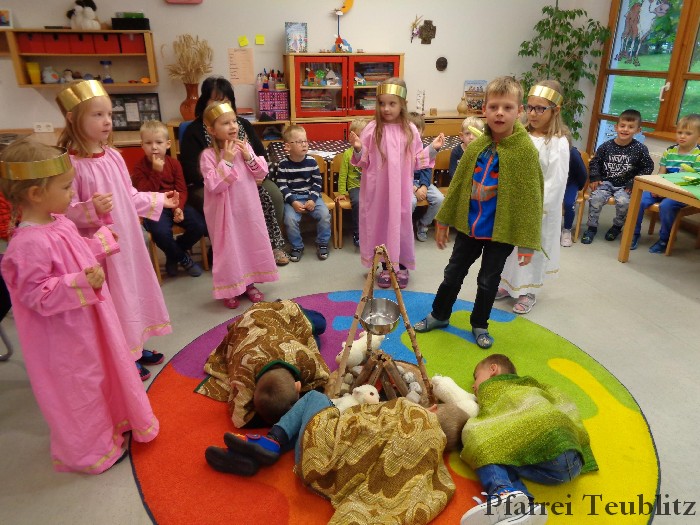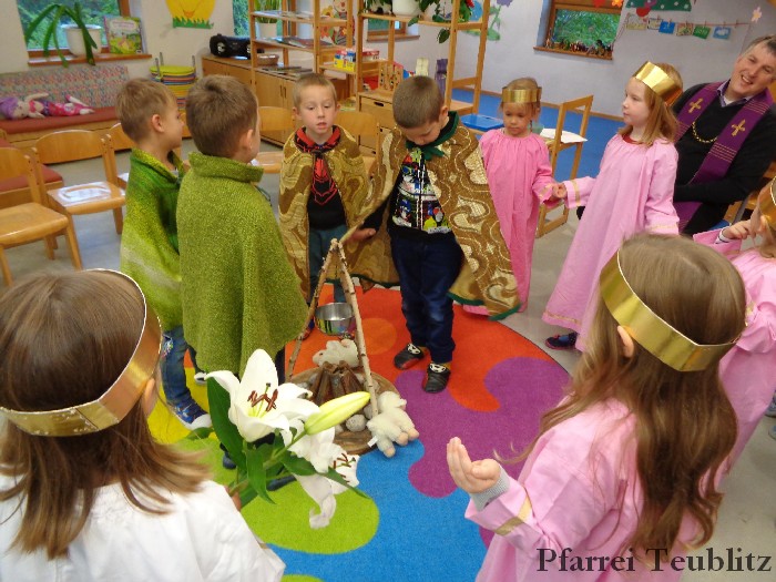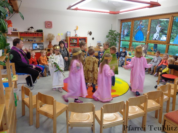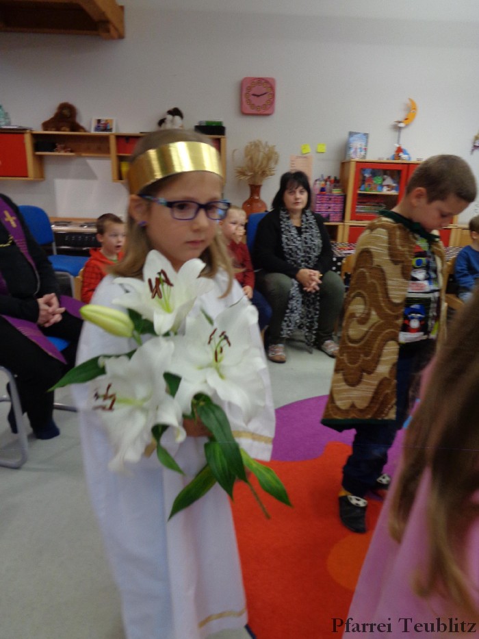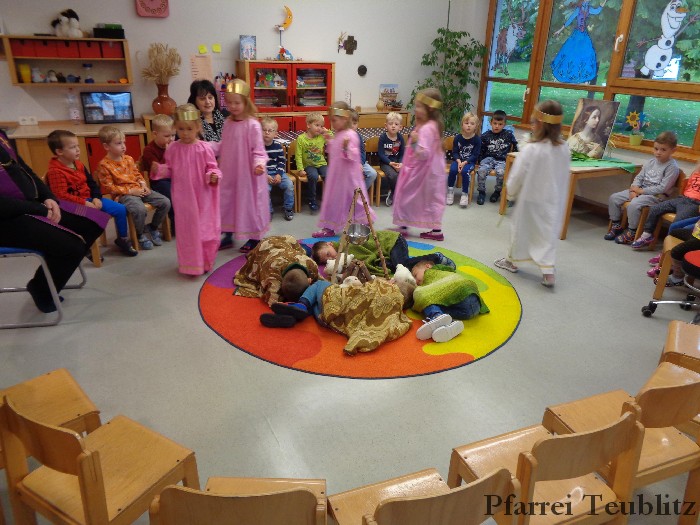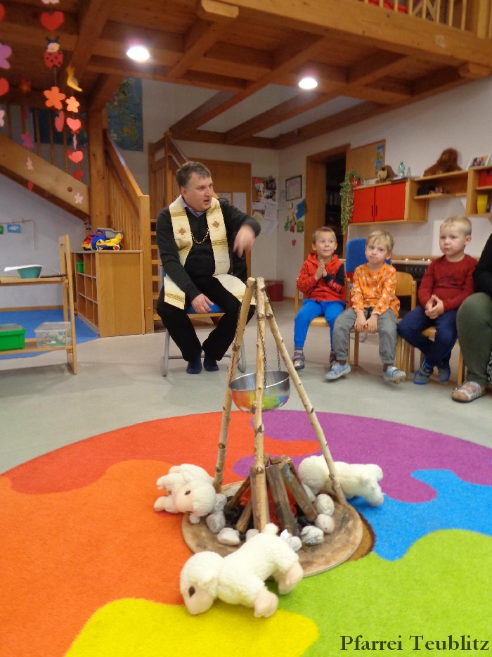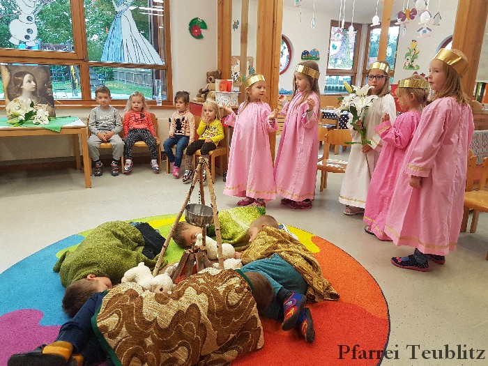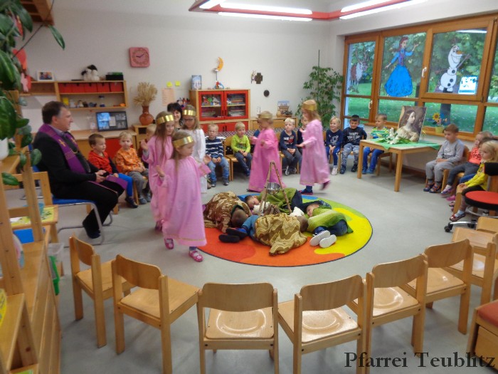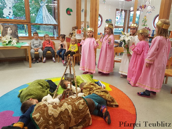 Am Tag nach dem Gedenktag des Erzengel Gabriels besuchte deshalb Pfarrer Michael Hirmer die Kinder, um mit ihnen den Namenstag ihrer Gruppe zu feiern. Dabei staunte der Geistliche nicht schlecht, was sich die Kleinen haben einfallen lassen. Sie sagen und beteten nicht nur miteinander sondern erzählten dem Pfarrer voller Freude, was der heilige Gabriel alles gemacht hat. Eine Szene spielten die Kinder sogar. „Der heilige Gabriel hat den Hirten gesagt, dass Jesus geboren ist.“, erklärte ein Vorschulkind.
