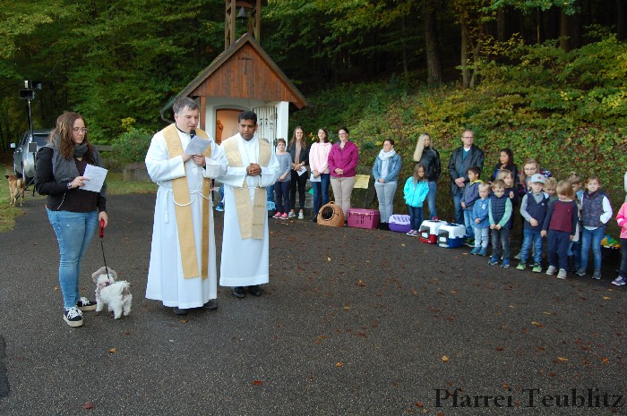 Pfarrer Michael Hirmer und Pfarrvikar Pater John freuten sich, dass so viele gekommen waren, um ihre Hunde, Katzen oder Hasen segnen zu lassen. Besonders wurden aber die Kinder des Kinderhauses Herz Jesu begrüßt durch den Pfarrer begrüße: „Vielen Dank, dass ihr uns heute die Segensfeier gestaltet. Der heilige Franziskus ist ja auch der Patron eurer Kindergartengruppe. Wenn wir heute die Haustiere segnen, feiern wir nochmals den Namenstag eures Gruppenheiligen.“
