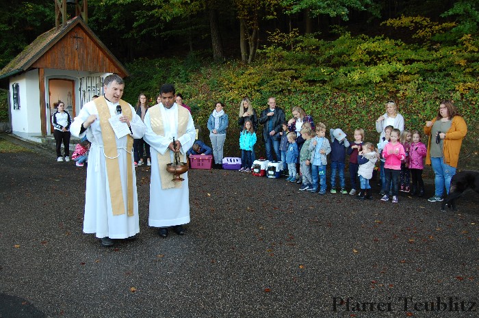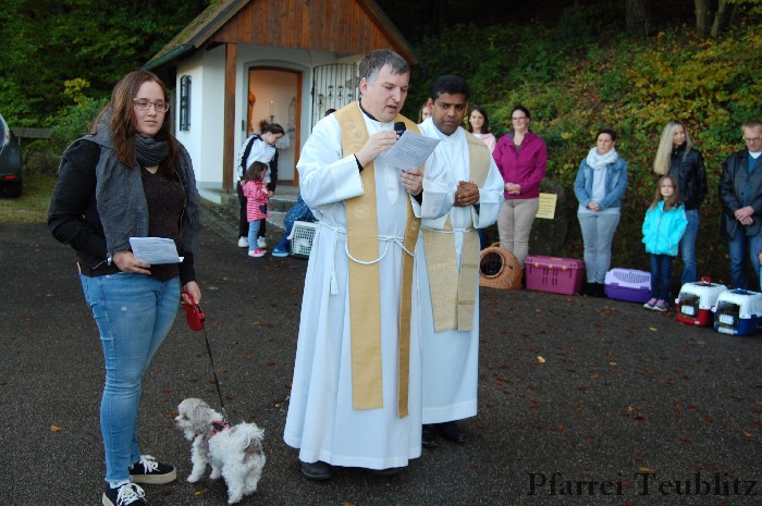 Bei wunderschönem Herbstwetter fand die nunmehr achte Tiersegnung zu Ehren des heiligen Franz von Assisi statt. Viele kamen mit ihren Haustieren zur Saltendorfer Franziskuskapelle, wo das Ehepaar Andrea und Lothar Ziechaus vom Kapellenverein schon alles vorbereitet hatte.