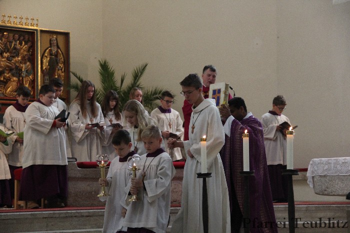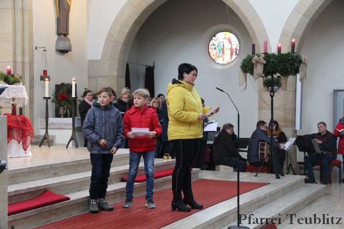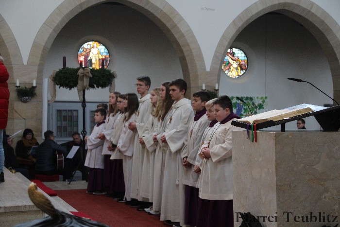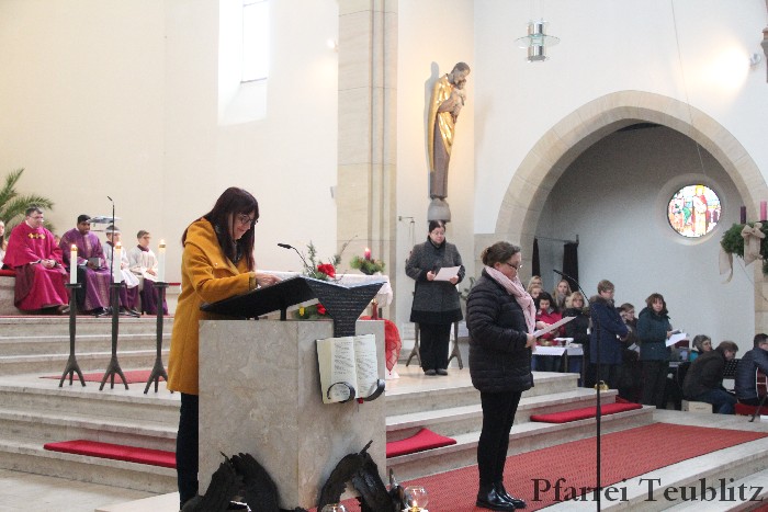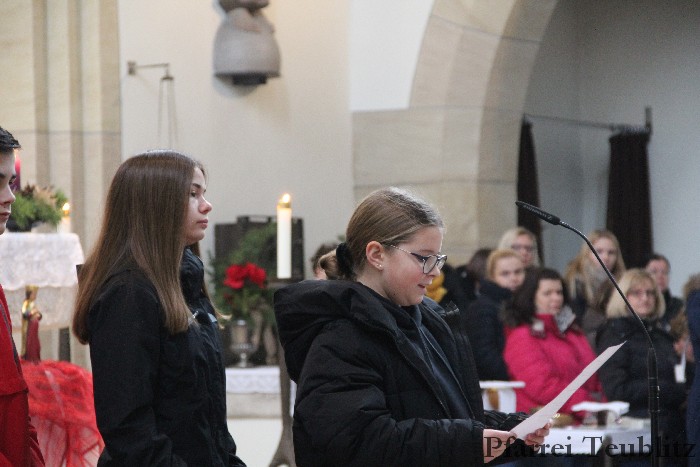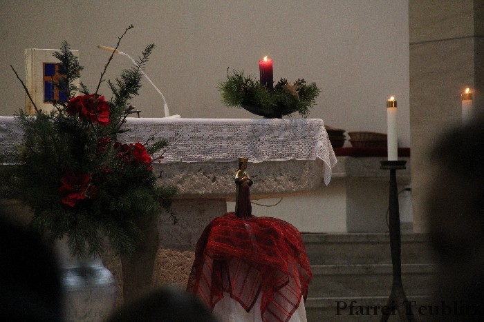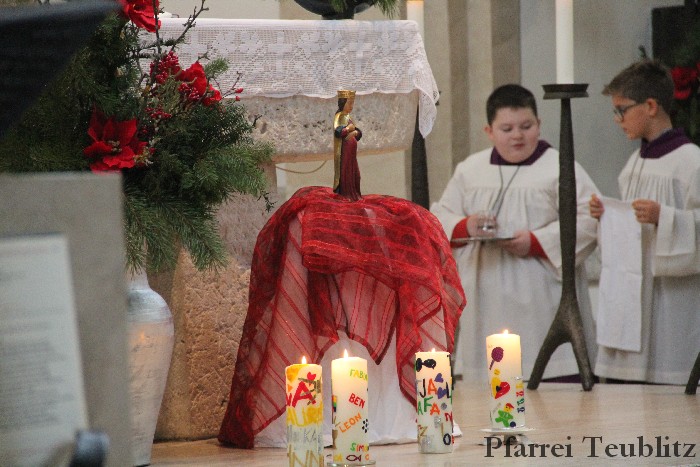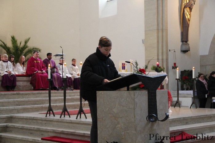 Am 8. Dezember, dem Hochfest der Gottesmutter Maria, feierte die Pfarrgemeinde Herz Jesu Teublitz einen ganz besonderen Gottesdienst. Auch wenn liturgisch das Hochfest vom zweiten Adventssonntag verdrängt wurde, stand Maria im Blickfeld der Predigt. Das Familiengottesdienstteam ließ die Gedanken Mariens bei der Verkündigung für die aktuelle Gottesdienstgemeinde lebendig werde. Musikalisch wurde der Gottesdienst vom Gemeindechor und der Gitarrengruppe gestaltet.