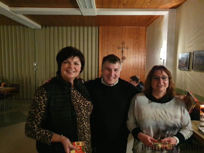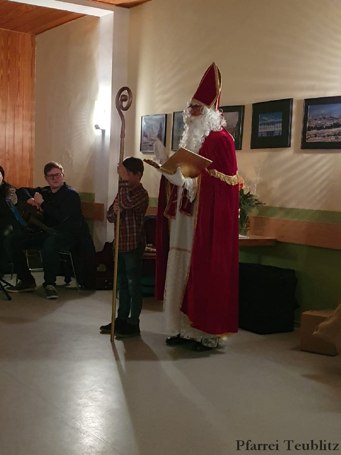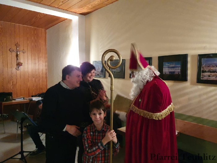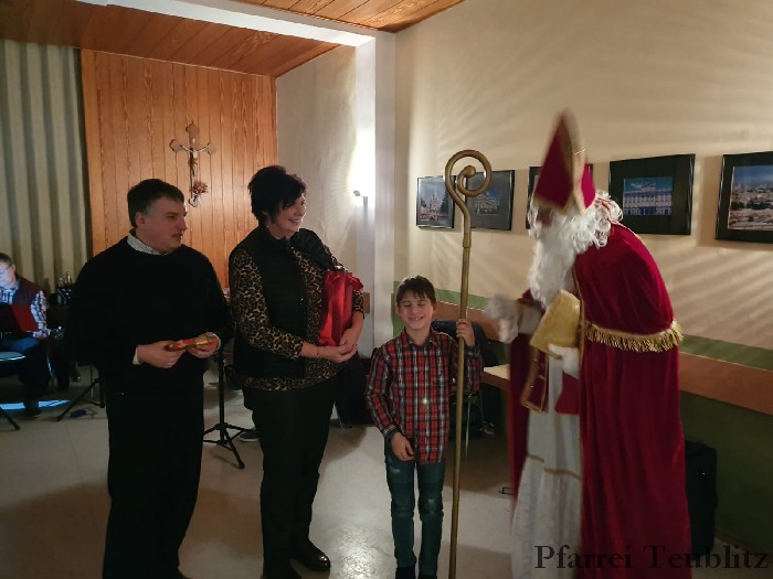 Am Vorabend des dritten Adventssonntags feierte die Kolpingsfamilie Teublitz ihre Adventsfeier. Schon um 18 Uhr versammelte man sich in der Pfarrkirche um bei der Vorabendmesse dem seligen Adolph Kolping zu gedenken. Der Gottesdienst wurde von der Vorstandschaft gestaltet und von der Gitarrengruppe und dem Gemeindechor der Pfarrgemeinde musikalisch begleitet. Nach der Messe fand die Adventsfeier im Pfarrheim statt. Auch diese wurde mit Musik der Gitarrengruppe gestaltet. Wie jedes Jahr kam der Nikolaus. Pfarrer Michael Hirmer bedankte sich als Präses bei allen Aktiven der Kolpingsfamilie.
