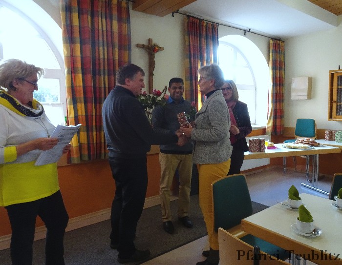 Frauenbundsvorsitzende Lisbeth Bemmerl begrüßte die Anwesenden. Gemeinsam mit Pfarrvikar P. John Mathew sang Pfarrer Michael Hirmer ein Geburtstagsständchen, bevor die Geistlichen mit der KDFB-Vorsitzenden Rosen und Gesenken an die Jubeldamen verteilten. Beim gemeinsamen Kaffeetrinken kam man ins Gespräch. Lustig und zugleich nachdenklich wurde es, als Maria Dickert ihre Gedichte und Witze zum Besten brachte. Pfarrer Hirmer bedankte sich bei den beiden Vorsitzenden Waltraud Neumüller und Lisbeth Bemmerl sowie den Helferinnen des Frauenbundes für die Ausrichtung der Jubiläumsfeier.