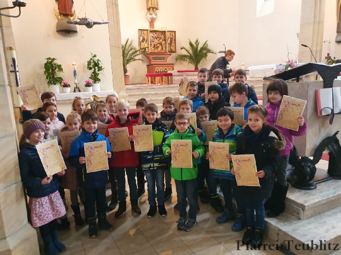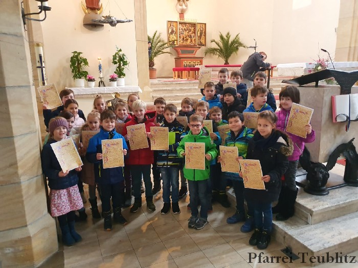 Seit September sind die Kinder der dritten Klassen auf einen gemeinsamen Weg mit Jesus. Schritt für Schritt gehen die Kinder zwei Sakramenten entgegen. Das Sakrament der Versöhnen, die Beichte, feiern die Kommunionkinder schon Mitte Februar das erste Mal. Die heilige Kommunion werden die Kinder mit ihren Familien während der Kar- und Ostertage das erste Mal empfangen. Das große Dankfest zur Erstkommunion findet dann am ersten Mai-Sonntag statt.