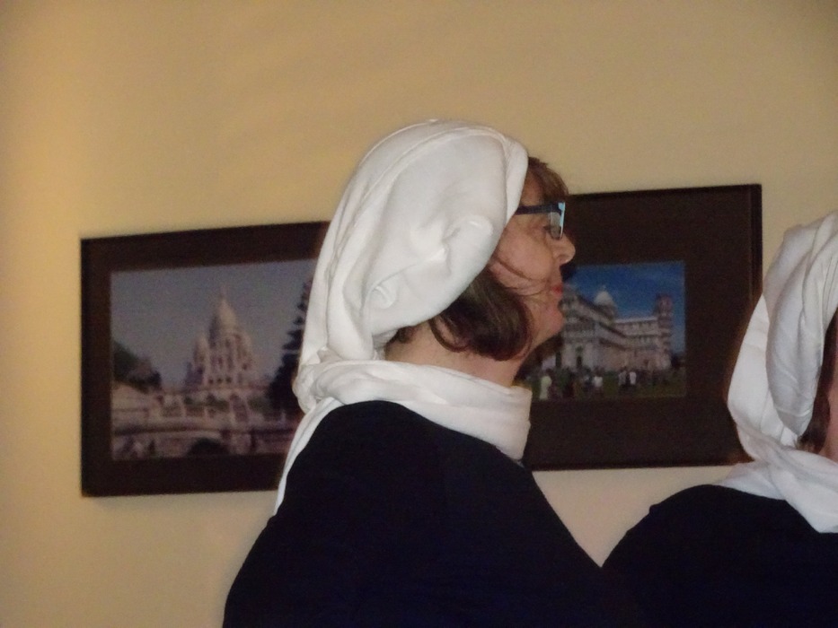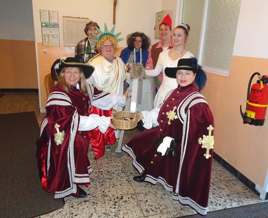 Schon am frühen Vormittag trafen sich die „Narrischen Deiblitzer Weiber“ im Pfarrheim zum Start für den Rathaussturm und ihr Treiben am Marktplatz. Ihre liebe Not hatten sie mit dem Goldesel, der sich weigerte Goldtaler auszuspucken. Erst nach gutem „Zureden“ eines Schreiners vom städtischen Bauhof gab er seinen Widerstand auf. Pater John, der Pfarrer Hirmer bei der Aufführung glänzend vertrat, gesellte sich zu den Frauen und stieß mit ihnen auf gutes Gelingen an.