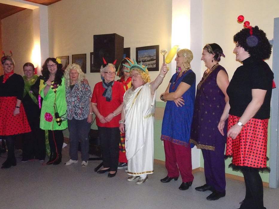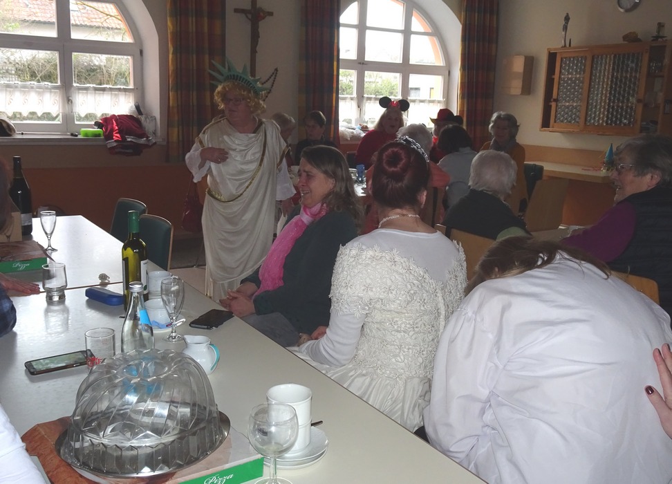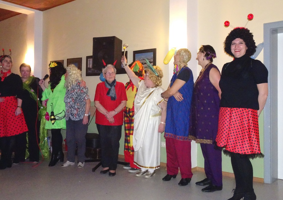 Vorsitzende Waltraud Neumüller freute sich, über 80 Frauen, von ganz jung bis ganz jung geblieben, begrüßen zu können. Obwohl kein Maskenzwang bestand, erschienen alle, manche in sehr aufwendigen Kostümen. Die Maskenpremierung gestaltete sich sehr schwierig, so dass alle den ersten Preis zugesprochen bekamen und zu einem Gläschen Schnaps in der Bar eingeladen wurden.
