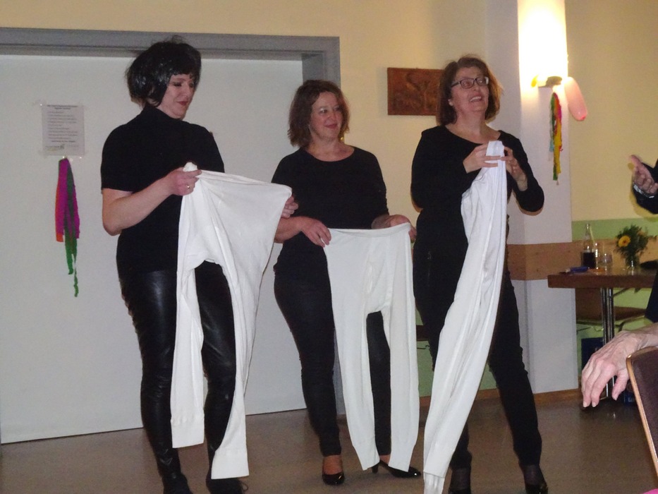 Auch der aus Frankreich angereiste Modeschöpfer alias Michela Müllner hatte die Lacher auf seiner Seite. Er ließ von seinen Models Anna Schwab, Renate Hammerl und Andrea Ernst vorführen, in welch raffinierte Kleidungsstücke eine Schießer-Feinripp-Herrenunterhose mit Eingriff verwandelt werden kann. Vom einfachen Schal über eine Schürze bis hin zum Schulterjäckchen wurden von den graziös über den „Roten Teppich“ schreitenden Schönheiten elf Variationen gezeigt.