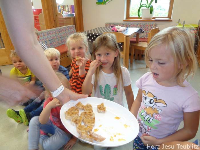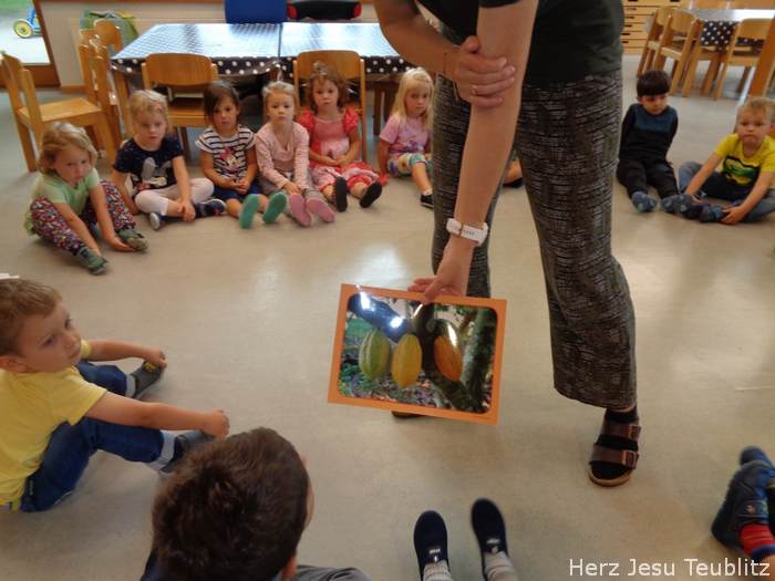 Voller Freude strömen seit wenigen Wochen die Kinder wieder in ihre Krippen und Kindergräten. Auch im katholischen Kinderhaus Herz Jesu Teublitz hat der Alltag wieder begonnen, auch wenn so manche Vorgaben und Hygienekonzepte wegen der noch andauernden Corona-Krise beachtet werden müssen. Dies hindert die engagierten Kindergärtnerinnen aber nicht daran schon wieder besondere Aktionen mit entsprechendem Lerneffekt für die Kinder anzubieten. Deshalb beteiligte sich das katholische Kinderhaus Teublitz vom 11. bis 25. September an der diesjährige Faire Woche.
