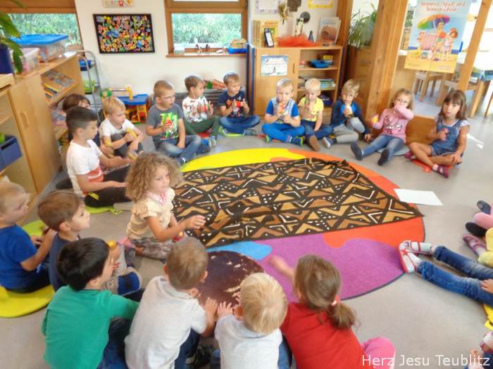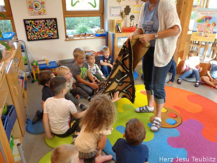 In seinem Engagement um eine faire, soziale und ökologische Welt hat das katholische Kinderhaus Herz Jesu Teublitz seit Jahren einen starken Partner an seiner Seite. In Kooperation mit dem Weltladenaden Teublitz wurden in jeder Gruppe afrikanische Märchen vorgelesen. Nebenbei konnten die Kinder – wie landesüblich – am Boden sitzen und fair gehandelte Waren aus Afrika verkosten. Es bestand außerdem die Möglichkeit, Fotos von Afrika anzuschauen.
