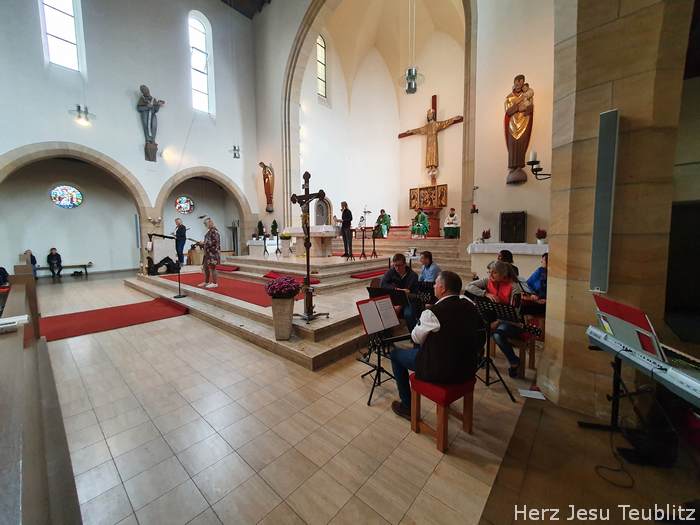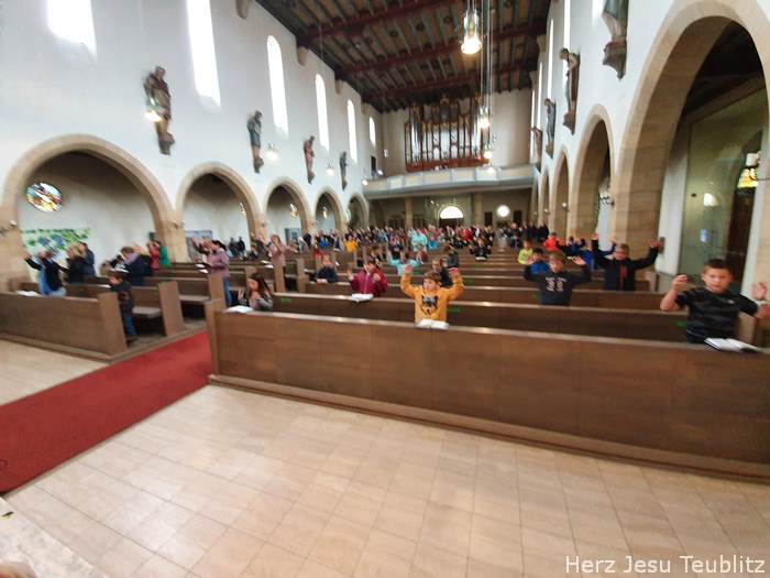 „Sein kein Frosch und steh zu deinem Ja!“, so lautete das Motto des letzten Familiengottesdienstes in Teublitz. Doch schon vor Beginn der Eucharistiefeier waren die Offiziellen der Pfarrgemeinde Herz Jesu gefordert. „Es kommen heute gleich zwei Kommunionjahrgänge.“, erklärte Ordner Werner Förster das hektische Treibe vor Gottesdienstbeginn, „40 Kommunionkinder, teilweise mit Familie, da wird es knapp in der Corona-begrenzten Kirche.“ Doch letztlich musste niemand abgewiesen werden.