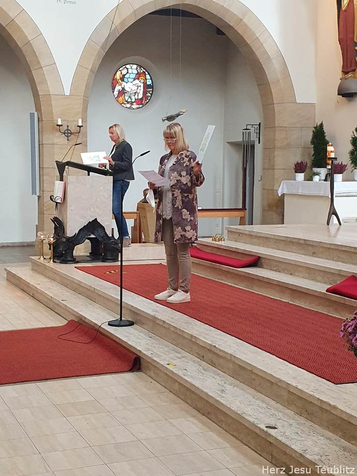 Das Familiengottesdienst-Team um Tine Wiendl, Conny Unter, Karin Niebauer und Marion Altmann nahmen Bezug auf das Evangelium des Sonntag. „Heute hörten wir von zwei Söhnen.“, hieß es im Predigtspiel, „Der eine sagt dem Vater sofort zu und macht es dann nicht. – Was will Jesus uns heute damit sagen?“ Mit Hilfen von Fröschen versuchte das Familiengottesdienst-Team zu erklären, wie wichtig es ist, zu seinem Ja-Wort zu stehen.