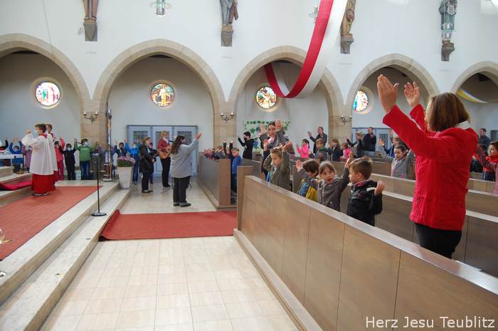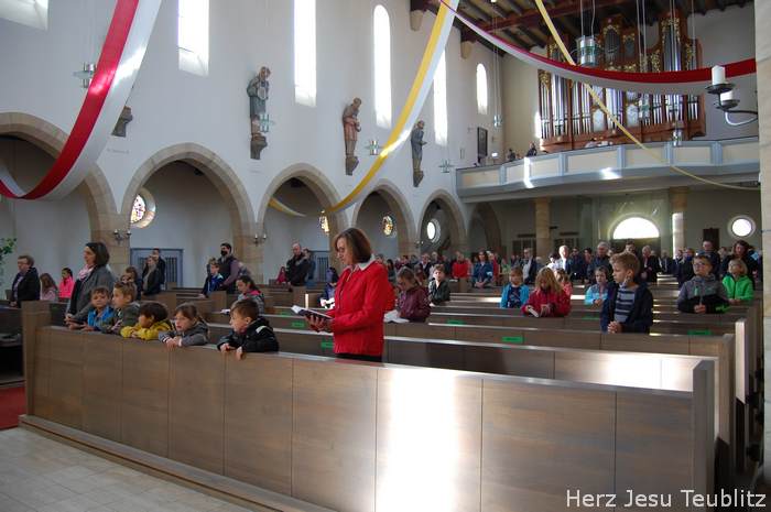 Am Ende des Gottesdienstes bedankte sich der Pfarrer bei den Kindergartenkindern und den Kindergärtnerinnen für die tolle Gestaltung des Gottesdienstes.