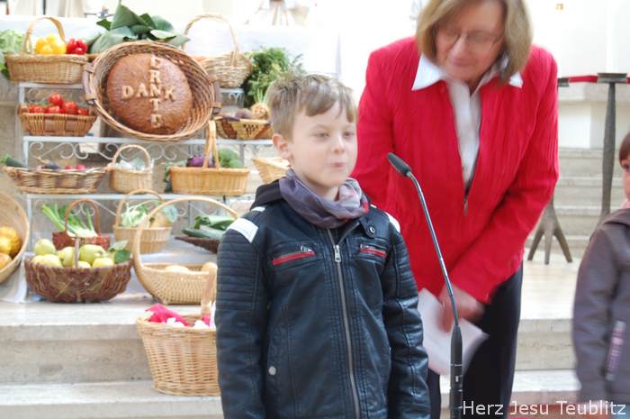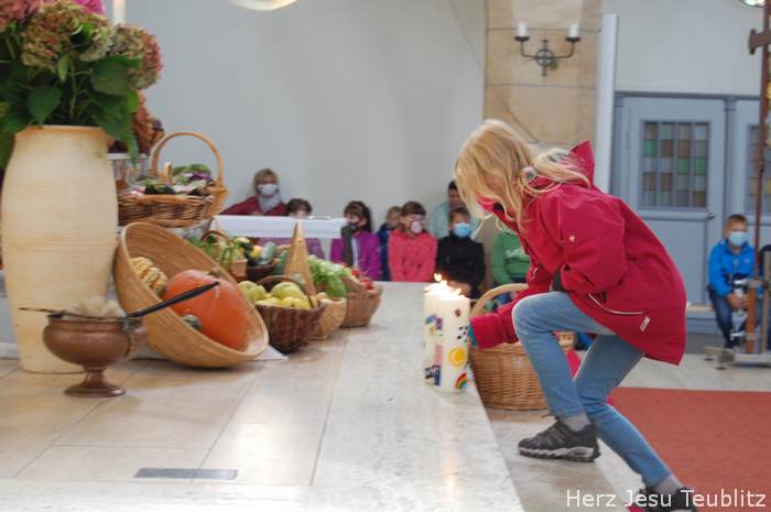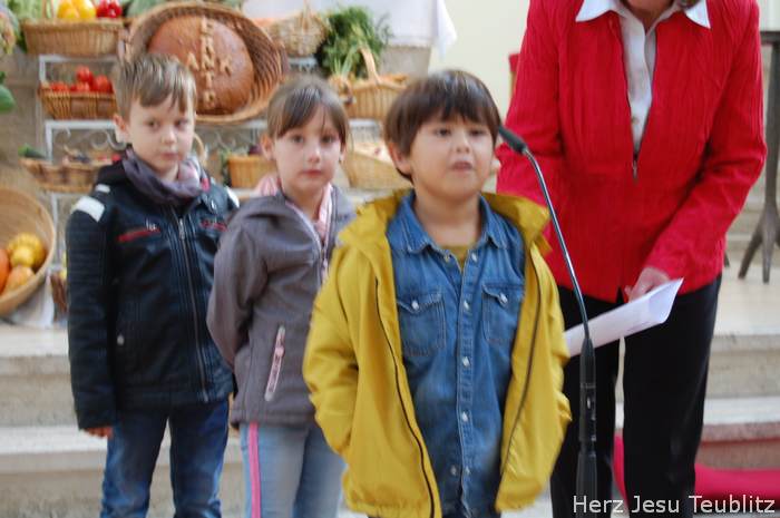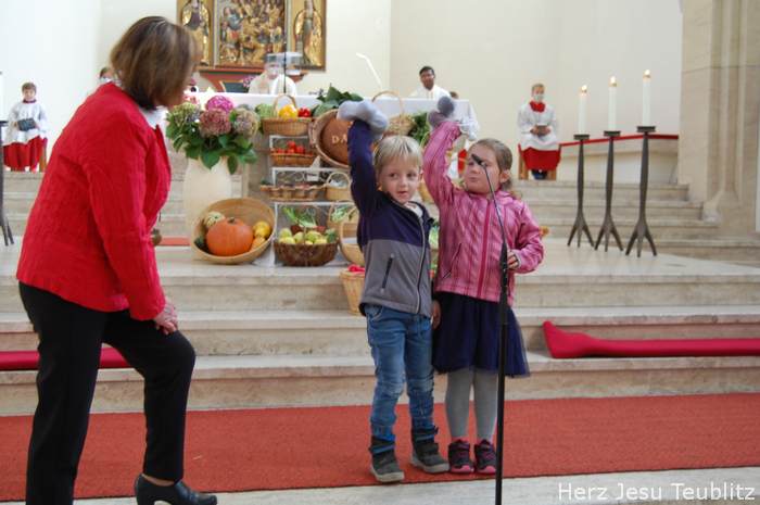 Zum Dank brachten die Kindergartenkinder weitere Lebensmittel zum Altar. Immer verbunden mit einem „Dankeschön“ an Gott, der alles hat reifen und wachsen lassen.