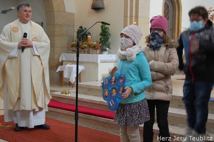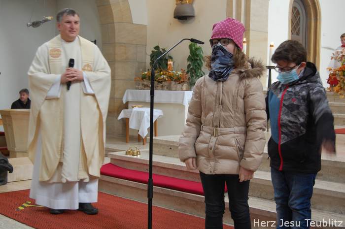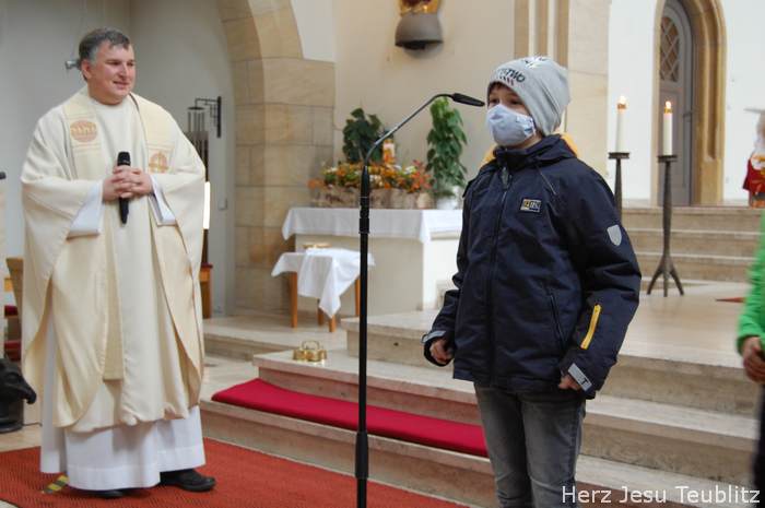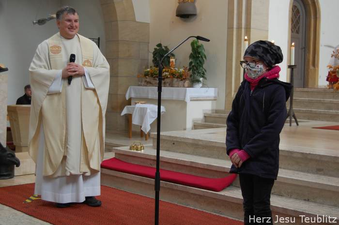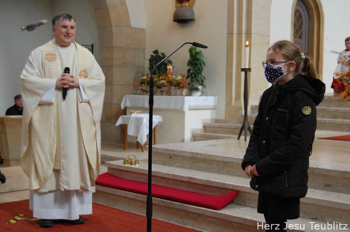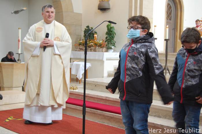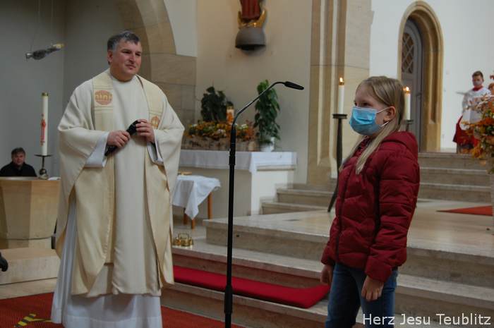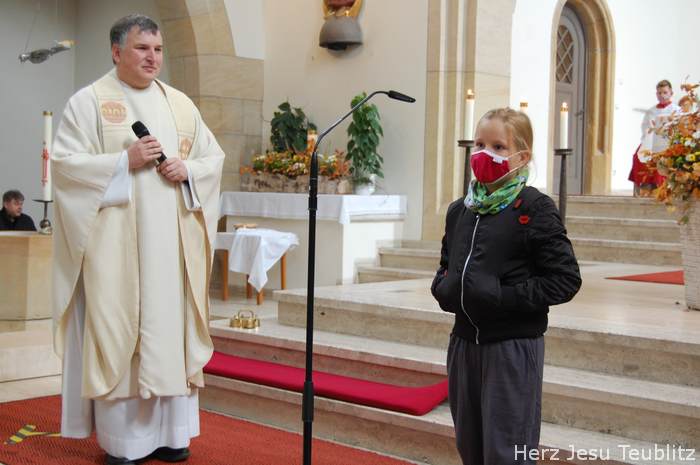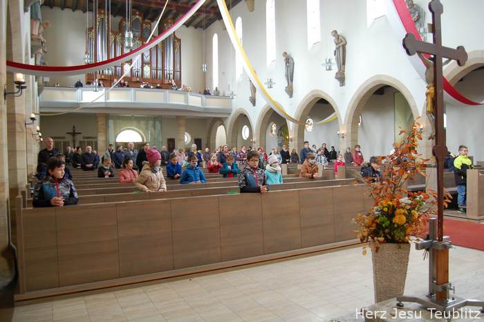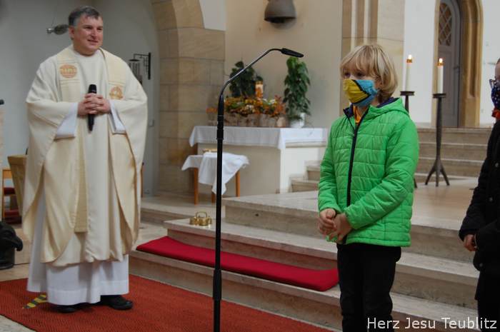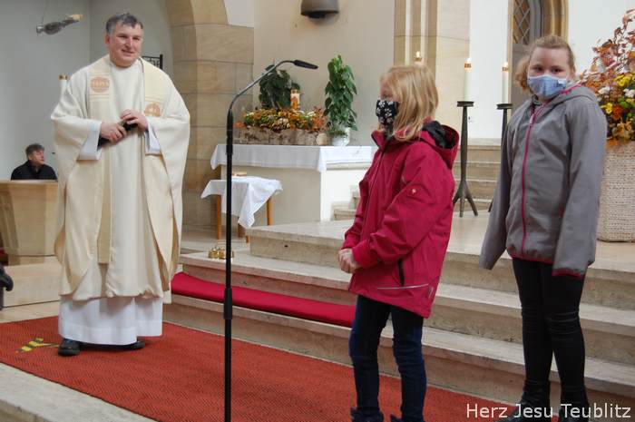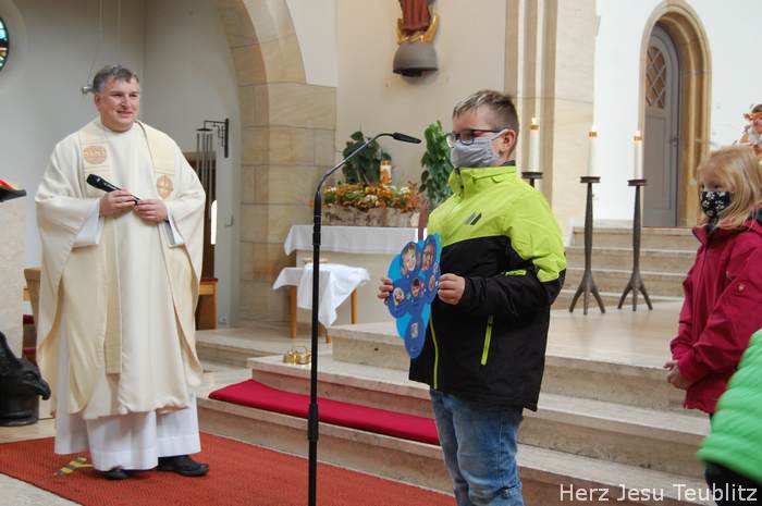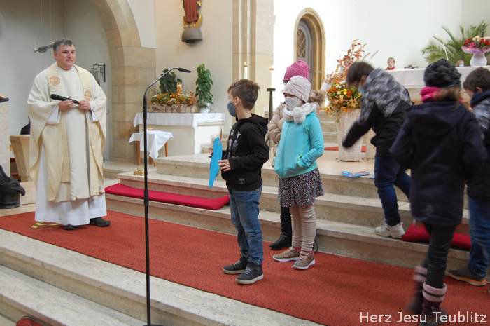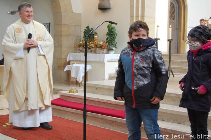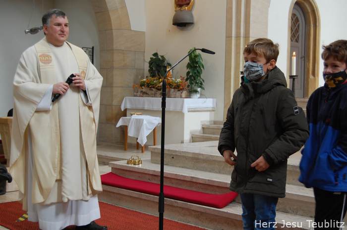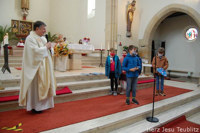 Am Kirchweihfest kamen die Kommunionkinder des nächsten Jahres in die Kirche, um feierlich den Startschuss für die Kommunionvorbereitung zu begehen. Pfarrer Michael Hirmer und Kaplan William Akkala begrüßten schon vor Beginn der Messe die Kinder mit ihren Eltern.