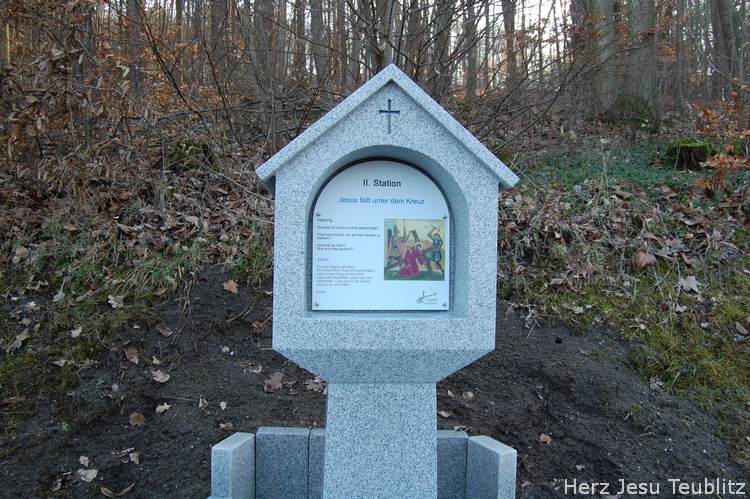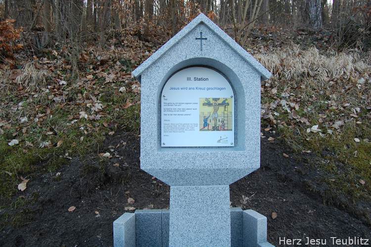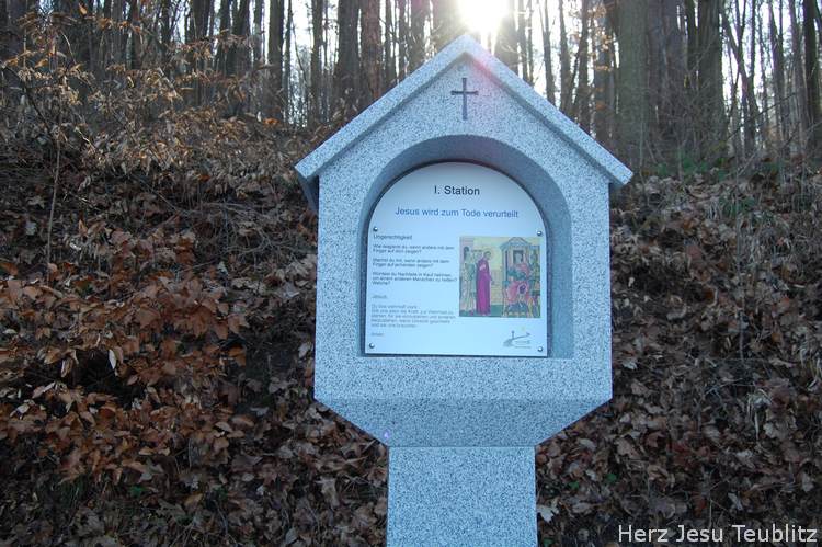 Von den ersten Ideen bis hin zur Umsetzten des Meditationsweges verging fast ein Jahr. „Es sollte ja gut werden.“, lächelt Kirchenpfleger Matthias Obermeier, „also mussten alle technischen aber auch rechtlichen Dinge geklärt werden.“ So galt es Verträge über Haftungsfragen mit den Grundstückeigentümern zu klären. „Dankbar sind für die die Unterstützung der Stadtverwaltung Teublitz und dem Bauhof.“, lobt Pfarrer Michael Hirmer die gute Zusammenarbeit mit der Kommune, „Die Stadt Teublitz stelle nicht nur ihren Grund zu Verfügung sondern half auch bei verkehrsrechtlichen Fragen und führte die Fundamentarbeiten für die Marterl aus.“ Diese sind aus hellem Granit ausgeführt. Steinmetz Thomas Feuerer erstellte den Entwurf für die Bildstöcke und errichtete diese. „Jedes Martel zeigt dabei eine DinA3 große Nische, in welche die wechselnden Meditation-Motive angebracht werden können“, beschreibt der Steinmetz seine Arbeit.