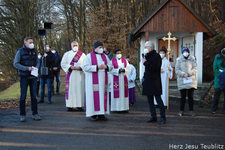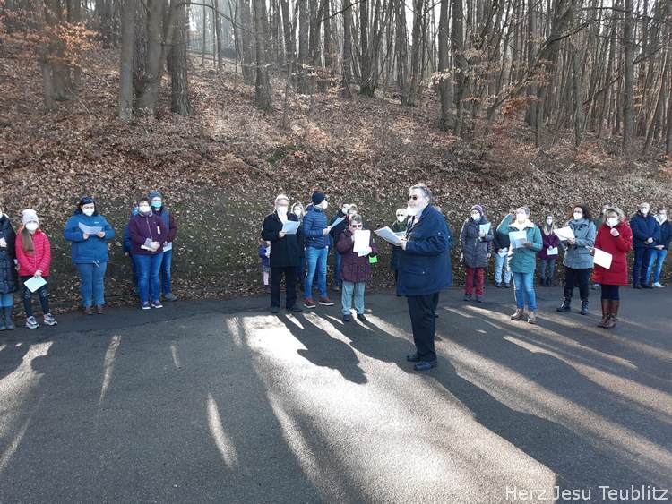 Zu Beginn der Segnung am Nachmittag des ersten Fastensonntags bedankte sich Pfarrer Michael Hirmer nicht nur bei den Grundstückseigentümern und den ausführenden Arbeitern. Sein Vergelt´s Gott galt auch den Sponsoren. Einzelpersonen, Verbände und Institutionen haben die Kosten für die Martel übernommen. Bei strahlendem Sonnenschein versammelten sich coronagerecht über 100 Gläubige, um den ersten Saltendorfer Kreuzweg zu beten. In sieben Stationen wurde dem Leiden Jesu Christi gedacht und dieses dabei immer wieder ins Heute aktualisiert. Die Texte trugen dabei Vorbeter und Lektoren der Gremien und Gruppierungen der Pfarrgemeinde Teublitz vor. Die musikalische Gestaltung übernahm eine Schola des Kirchenchors unter der Leitung von Norbert Hintermeier.