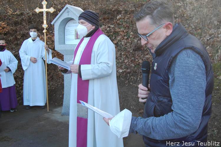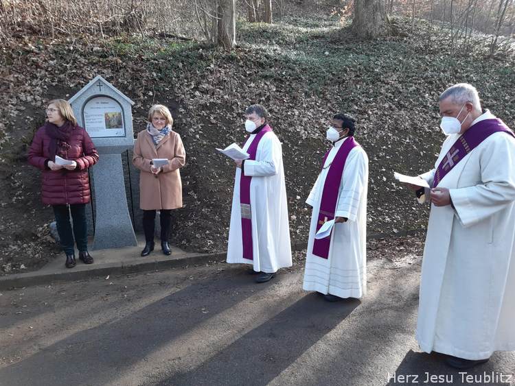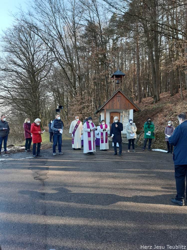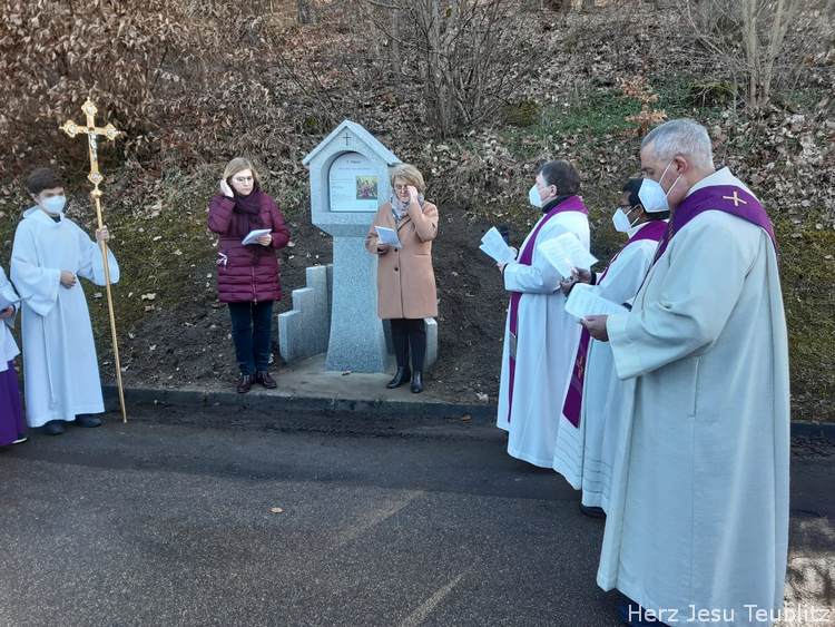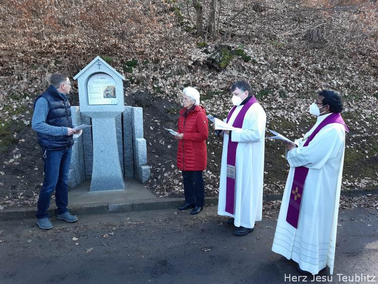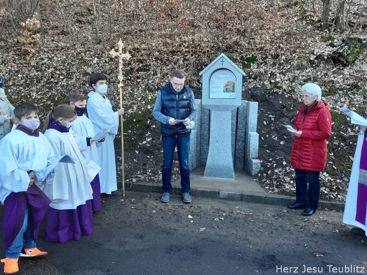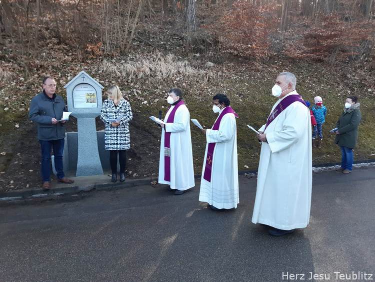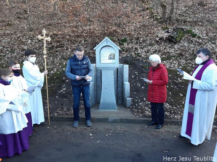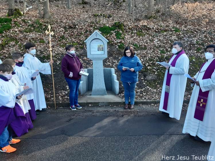 „Den Menschen Orte schenken, an denen sie Kraft schöpfen und auftanken können.“, mit diesen Worten einer Predigt von Michael Hirmer lobte der stellvertretende Teublitzer Bürgermeister Robert Wutz die Errichtung eines Meditationsweges in Saltendorf. „Er verbindet die Franziskuskapelle mit der Marienkirche, und wer weiß, vielleicht können wir den Weg verlängern zu einem spirituellen Weg, der auch die Pfarrkirche in Teublitz mit einbindet.“ Feierlich wurde der Saltendorfer Meditationsweg am ersten Fastensonnten mit einem Kreuzweg eingeweiht.