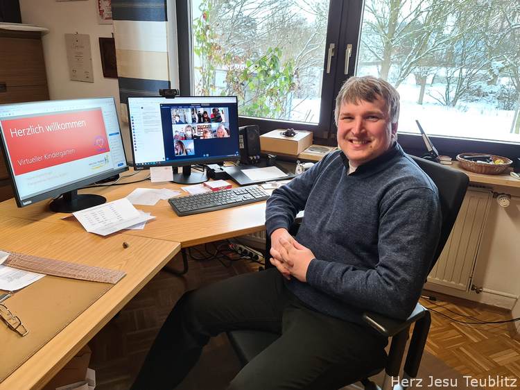 In enger Kooperation mit der Telemannschule Teublitz läuft auch der Religionsunterricht für die dritten Klassen über das Online-Portal der Pfarrgemeinde. „Ich gebe jetzt mehr Religionsunterricht, als vor der Pandemie.“, lächelt Pfarrer Hirmer, „und es ist sogar entspannter, weil dich die Schätzer einfach auf stumm schalten kann.“