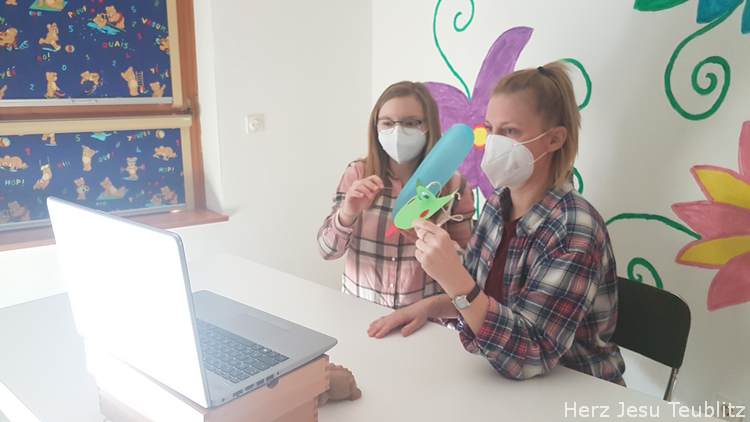 Mit eingebunden in die virtuelle Pfarrgemeinde ist auch das Kinderhaus. „Als ich vom Pfarrer eine Video-Botschaft über Whatsapp geschickt bekam, dachte ich mir, was soll das jetzt sein.“, erzählt Elternbeiratsvorsitzende Judith Kobler, „Doch die Idee unserer Kindergärtnerinnen war grandios.“ Jeden Tag trafen sich die Kinder mit ihren Eltern online via Webcam. „Die Kinder waren richtig gerührt, als sie sich wieder sehen konnten.“, erinnert sich Erzieherin Monika Böhm, „Wir können mit den Kindern so ein wenig spielen, ihnen Geschichten vorlesen und mit einander singen. Auch zeigen uns die Kinder was sie zuhause alles gebastelt oder gemalt haben.“ Die Eltern nutzen das virtuelle Kinderhaus vor allem, um sich Tipps für den „Kindergarten dahoarm“ geben zu lassen oder sich so manchen Corona-Frust von der Seele zu reden.