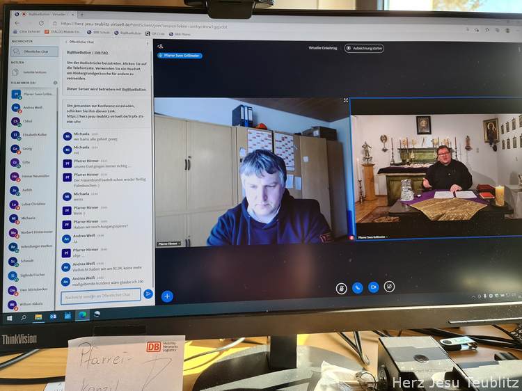 Am Ende des virtuellen Einkehrtages bedankte sich Pfarrer Michael Hirmer bei seinem Amtsbruder Sven Grillmeier, der via Webcam aus der Hauskapelle des Pfarrhauses in Kirchenleibach zugeschaltet war.