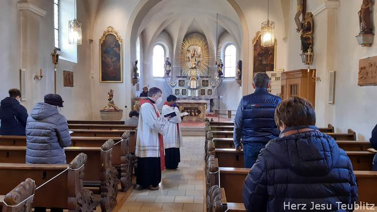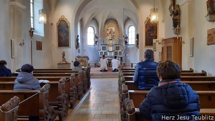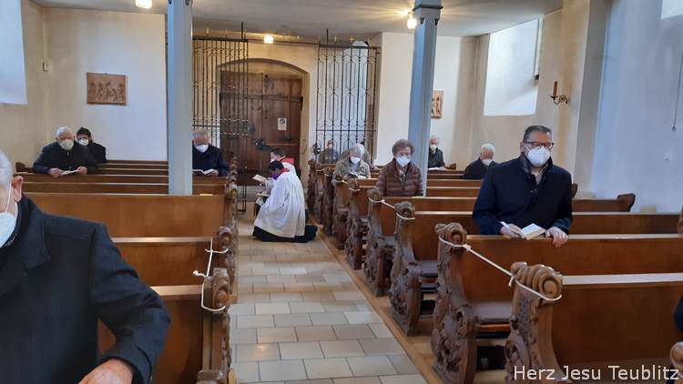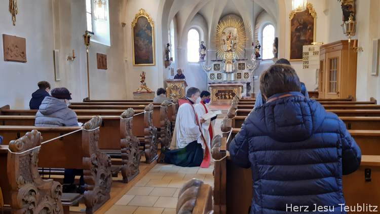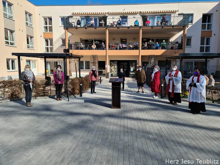 Am Karfreitag Vormittag betete die Pfarrgemeinde Herz Jesu den Kreuzweg um 9 Uhr in der altehrwürdigen Wallfahrtskirche zu Saltendorf. Viele Gläubige hatten sich versammelt, um dem Leiden des Herrn zu gedenken und mit ihm den Kreuzweg zu gehen. Um 10 Uhr wurde der Kreuzweg vor dem Altenheim gebetet. Dazu versammelten sich die Bewohnenden auf den Balkonen und hinter den Fenstern.