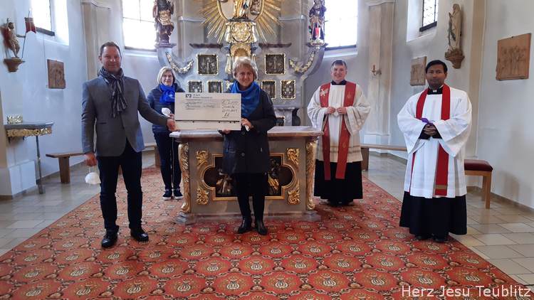 Anlässlich des Kreuzwegs in Saltendorf übergab der Frauenbund eine Spende für die Kirchenrenovierung.