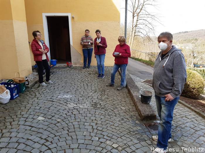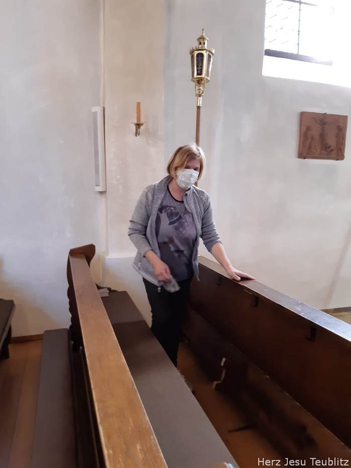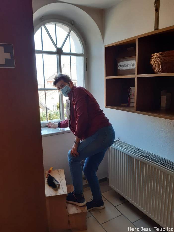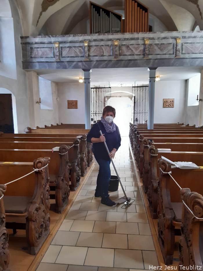 Und wenn die Saltendorfer zum Putzen anfangen, dann richtig! Jeder Heilige in der Kirche wurde vom Staub befreit. Unter den Kirchenbänken wurde auch das letzte Sandkorn entfernt. Die Sakristei wurde auf den Kopf gestellt. Selbst auf dem Turm und dem Dachstuhl hörte man die fleißigen Helferinnen und Helfer arbeiten.
