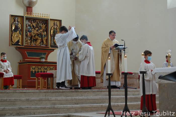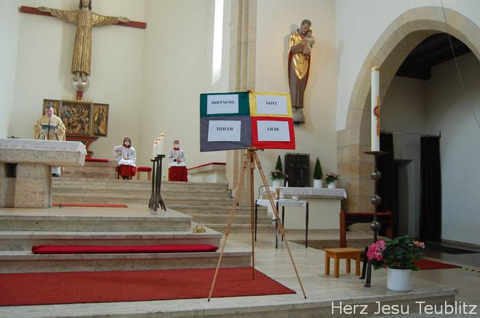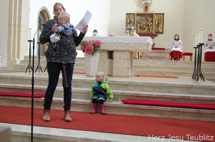 Über eine ganz besondere Premiere freute sich die Pfarrgemeinde Herz Jesu Teublitz am vergangenen Sonntag. Denn zum ersten Mal bereiteten Stefanie Franek, Viktoria Steininger und Ingried Wetzel einen Familiengottesdienst vor. Schon vor knapp einem dreiviertel Jahr gründete sich das neue Team aus dem jüngsten Familienkreis der Kolpingsfamilie. Am Ende des Gottesdienstes gab es großen Applaus aller Mitfeinerden. Pfarrer Hirmer bedankte sich beim neuen Team und freute sich auf weitere Familiengottesdienste.