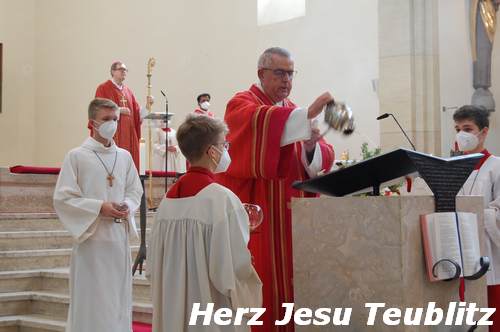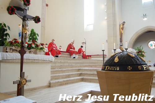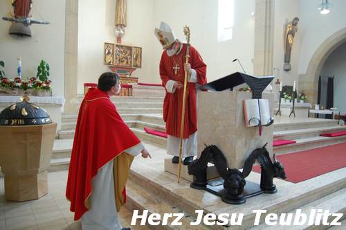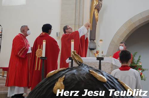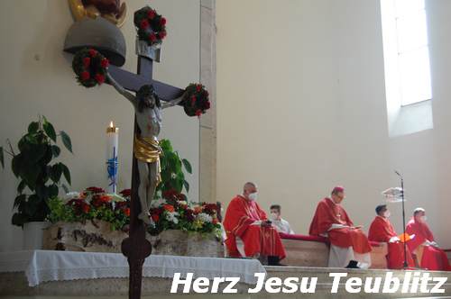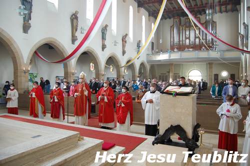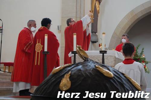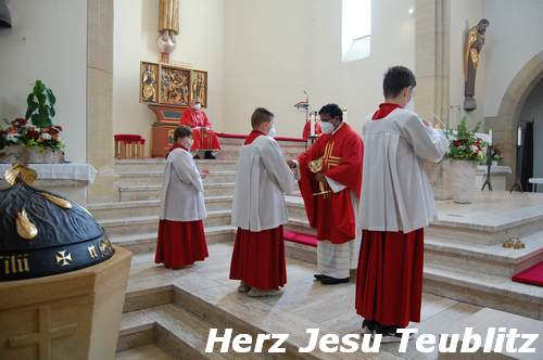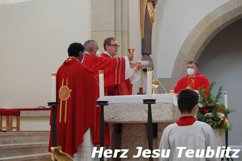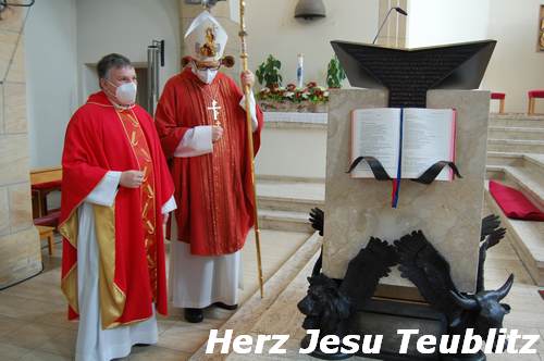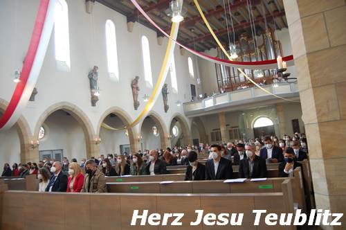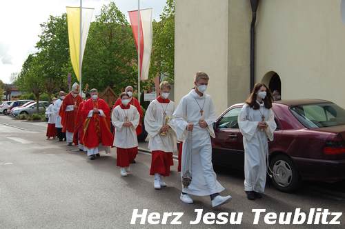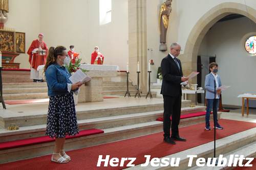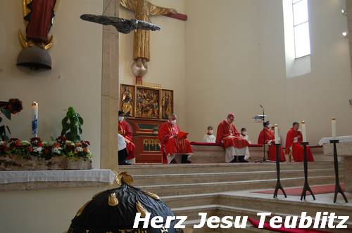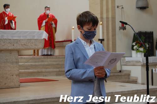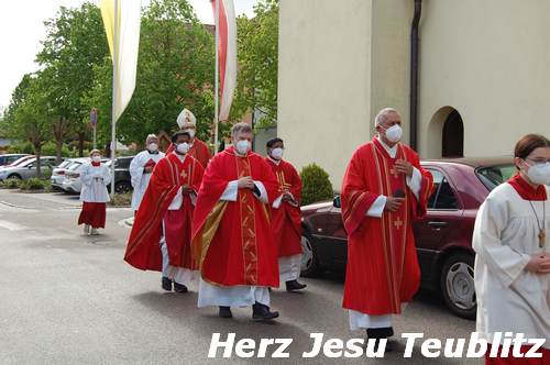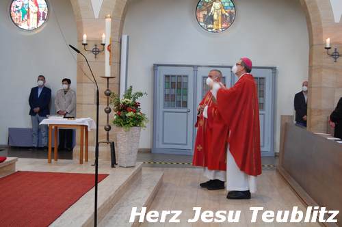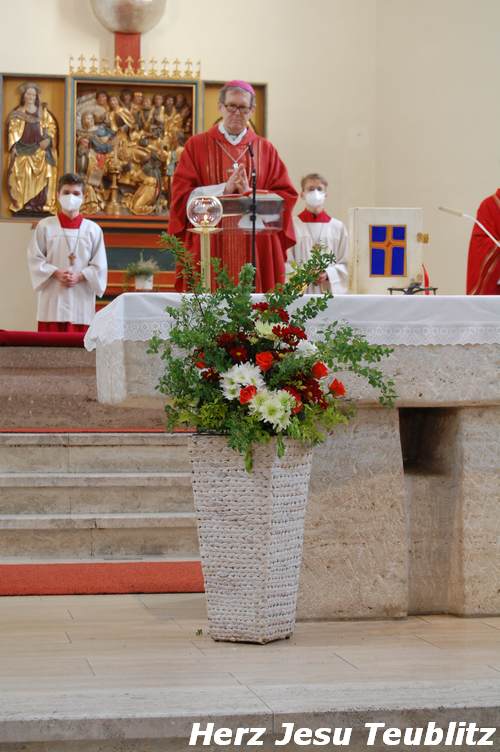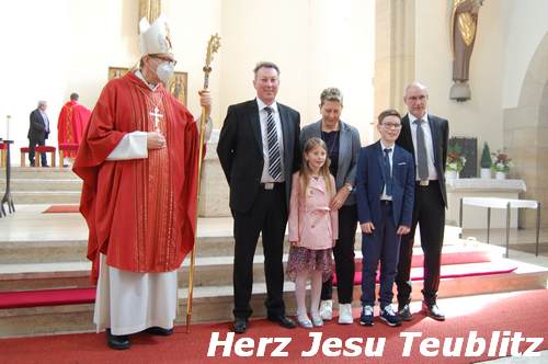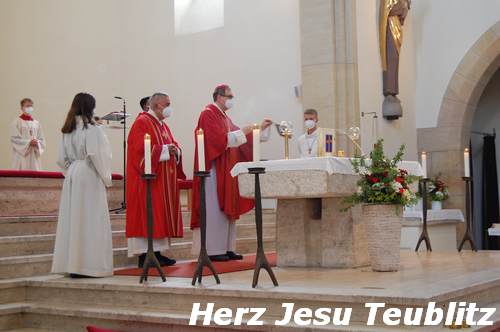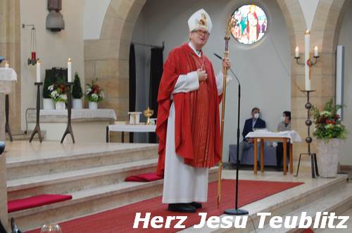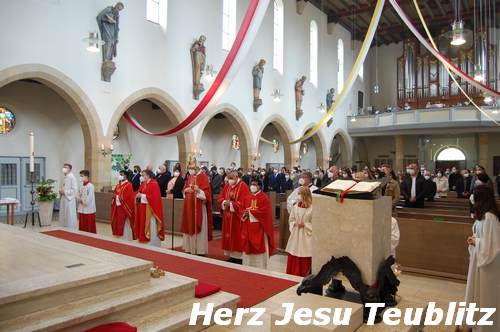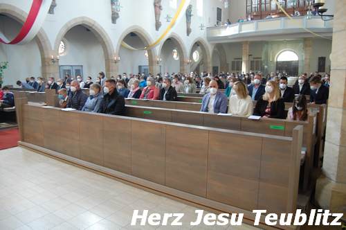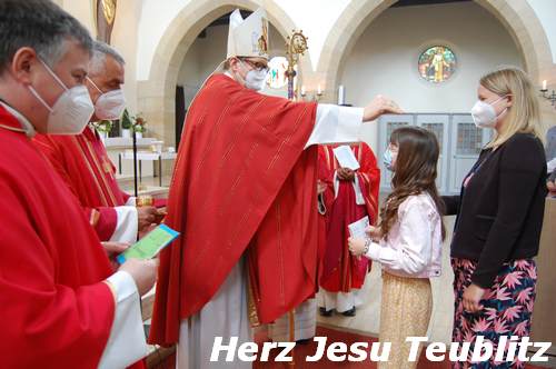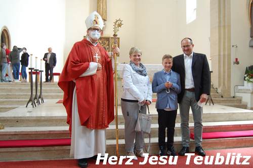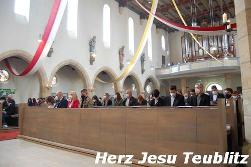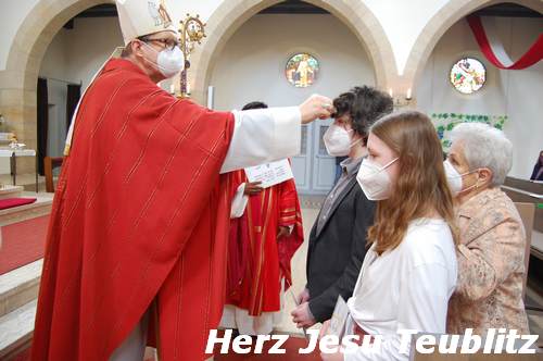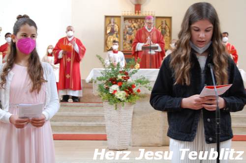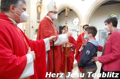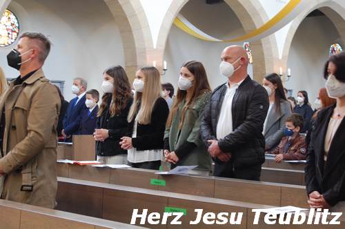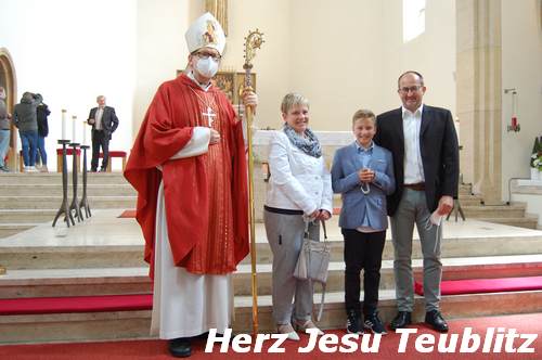 Im Auftrag des Regensburger Bischofs Dr. Rudolf Voderholzer spendete vergangenen Montagvormittag Weihbischof Dr. Josef Graf 43 Jugendlichen aus der Pfarreiengemeinschaft Katzdorf-Premberg und 28 Jugendlichen aus der Pfarrei Herz-Jesu Teublitz das Sakrament der Firmung in der Herz-Jesu-Kirche in Teublitz. Coronabedingt fanden vormittags zwei Firmgottesdienste statt. Gefeiert wurde der Firmgottesdienst durch Weihbischof Dr. Josef Graf in Konzelebration mit Pfarrer Michael Hirmer (Teublitz), Pfarrkaplan William Akkala (Teublitz), Pater Sijo (Katzdorf) und Diakon Heinrich Neumüller. In seiner Festpredigt forderte Weihbischof Graf die Firmlinge auf, den Glauben mitzunehmen auf ihren weiteren Lebensweg.
