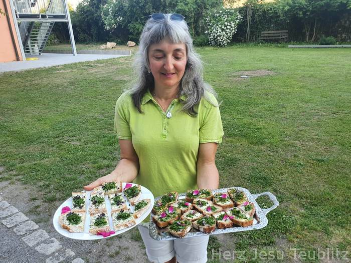Thematisch begleitete die heilige Hildegard von Binden durch den Abend. Immer wieder wurden zu Texten und Gebeten der großen deutschen Mystikerin gesunken oder meditiert. Auch die Snacks wurden nach Rezepten der heiligen Ordensfrau zubereitet. „Hildegard von Bingen ist für meine ein Vorbild und Glauben und Leben.“, meinte Maria Münze, „weil sie in ganzheitlicher Beziehung zur Schöpfung und Natur lebte.“ Der gemeinsame Singabend im Garten des Teublitzer Pfarrheimes war nicht die letzte gemeinsame Veranstaltung von Frauenbund und Kolpingsfamilie. Die Themenreihe „Hildegard von Bingen“ soll auch in den nächsten Monaten mit diversen Veranstaltungen fortgesetzt werden.