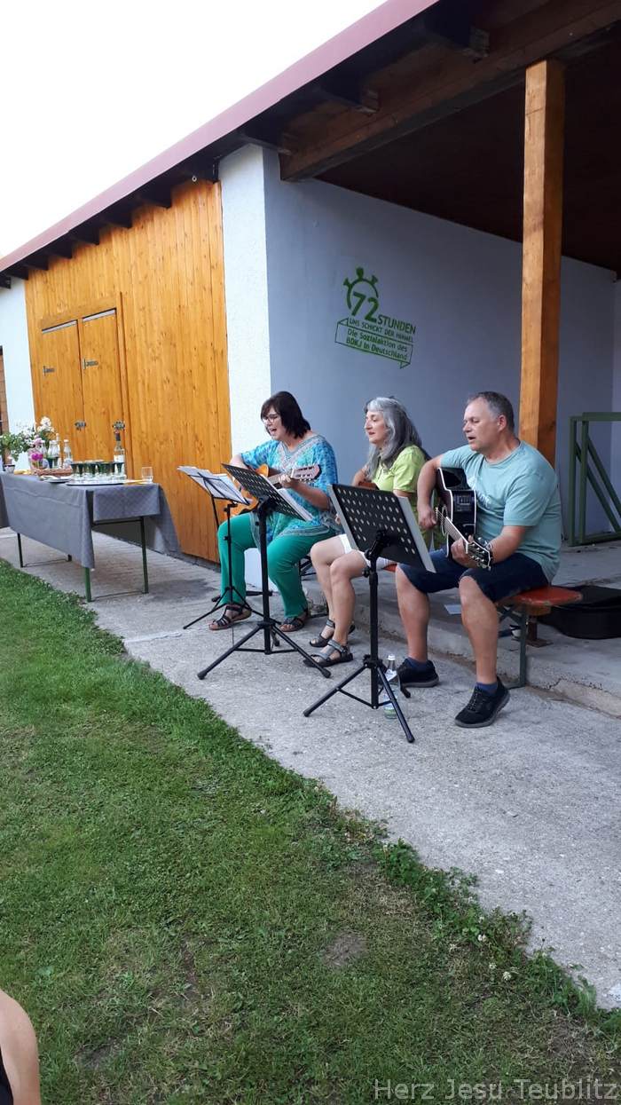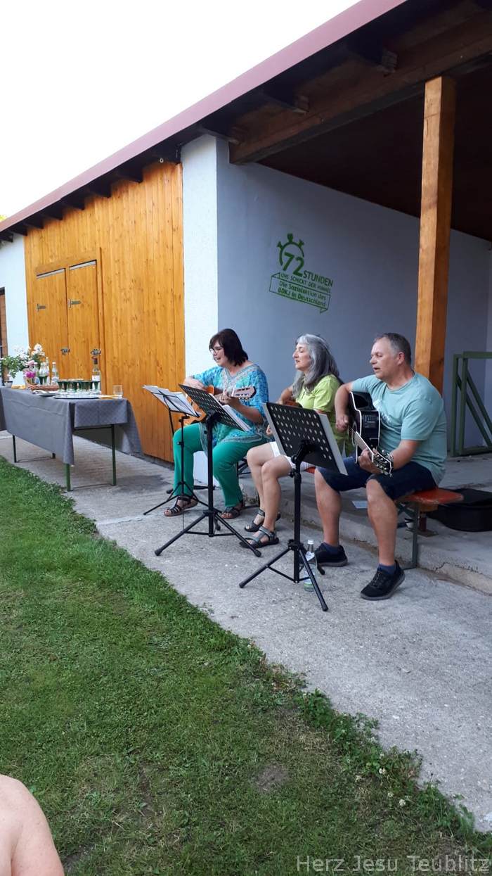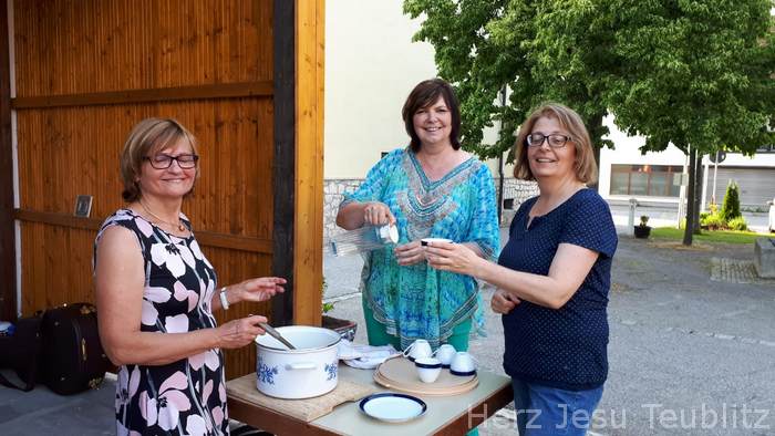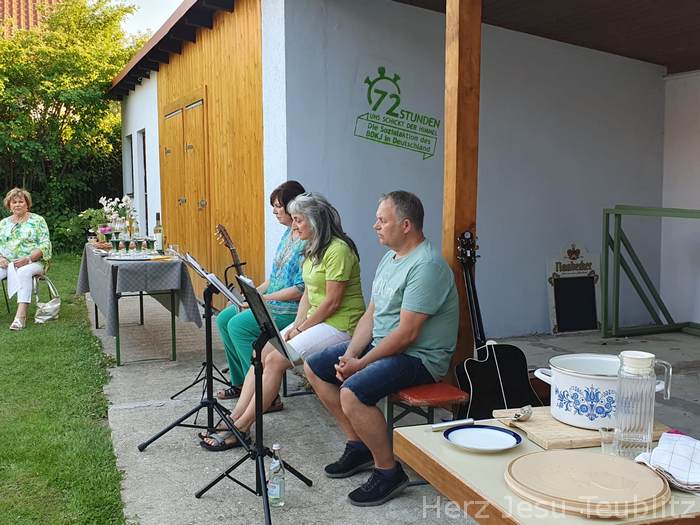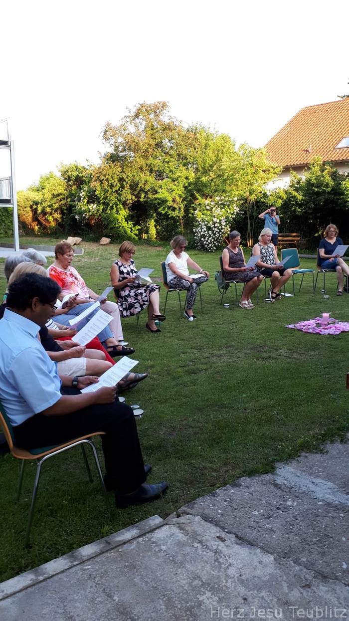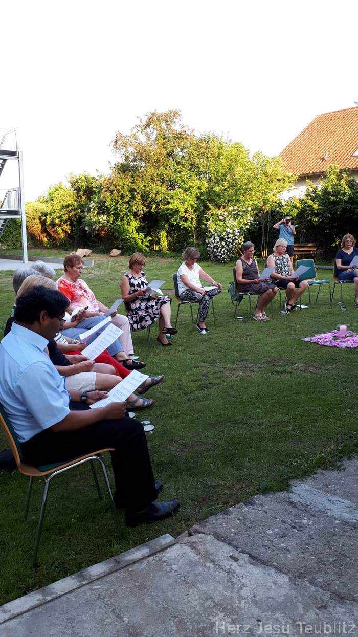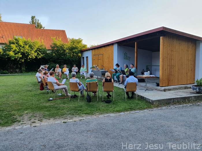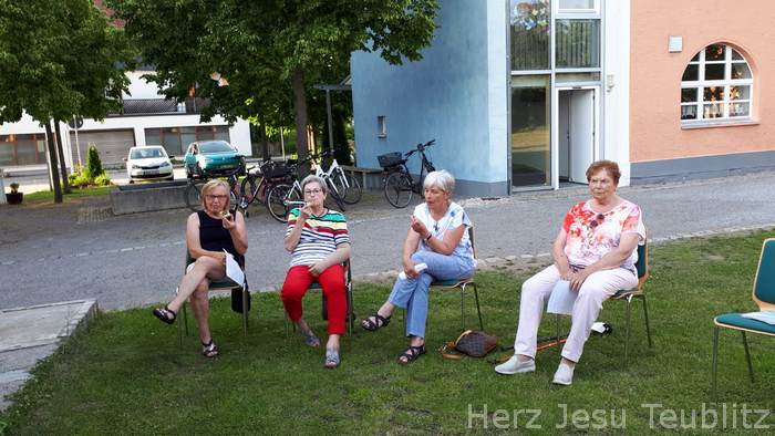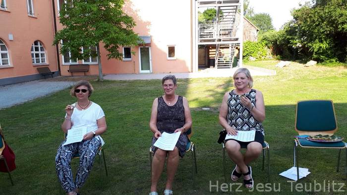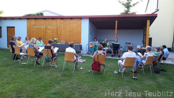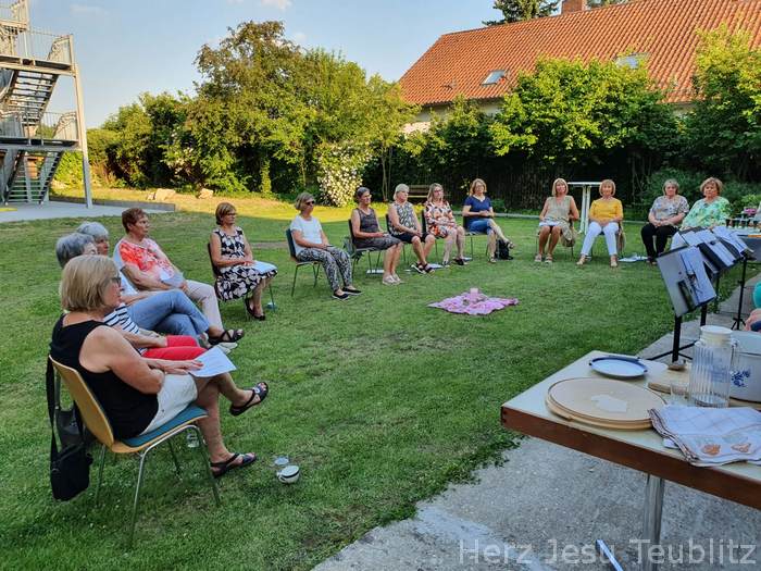 „Wir wollen den Menschen Freude und Hoffnung schenken und sich langsam am Ende der Corona-Pandemie wieder zusammenbringen.“, so beschrieb Martina Förster das gemeinsame Projekt des Teublitzer Frauenbundes und Kolpingsfamilie, „Bei aller gebotenen Sicherheit sind und bleiben wir eine gute Gemeinschaft.“ An einem heißen Sommerabend trafen sich einige Frauen zum gemeinsamen Singen im Pfarrgarten.