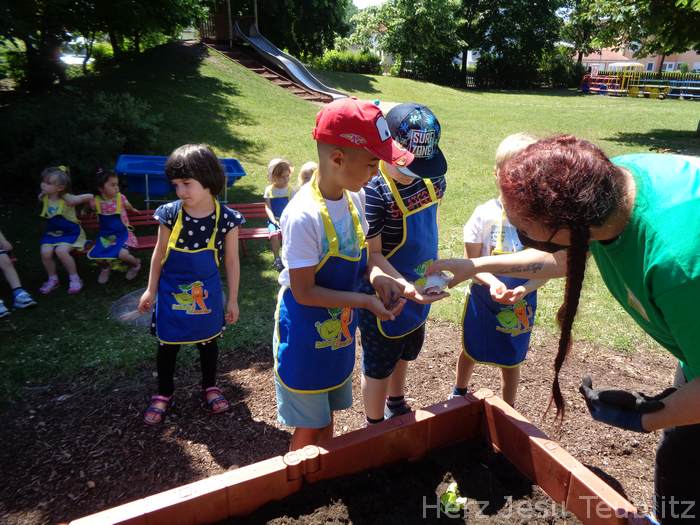 „Was gibt es schöneres als Kinder zu sehen, die voller Begeisterung ihre Welt entdecken?“, lächelt Helga Schmid, die das katholische Kinderhaus Herz Jesu Teublitz leitet und fügt mit Blick auf die Kinder hinzu, „Vor allem Gottes gute Schöpfung ist ein wunderbares Erfahrungsfeld für unsere Heranwachsenden.“ Gemeinsam mit der EDEKA-Stiftung wird seit einigen Jahren ein Hochbeet durch die Kindergartenkinder bestellt.