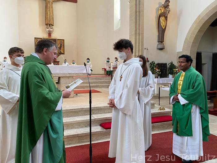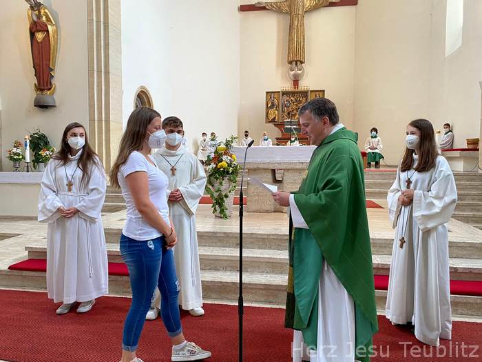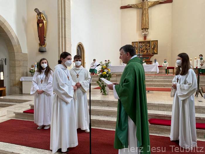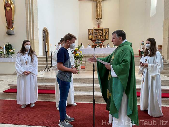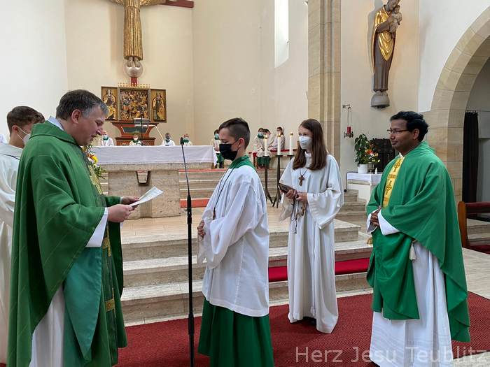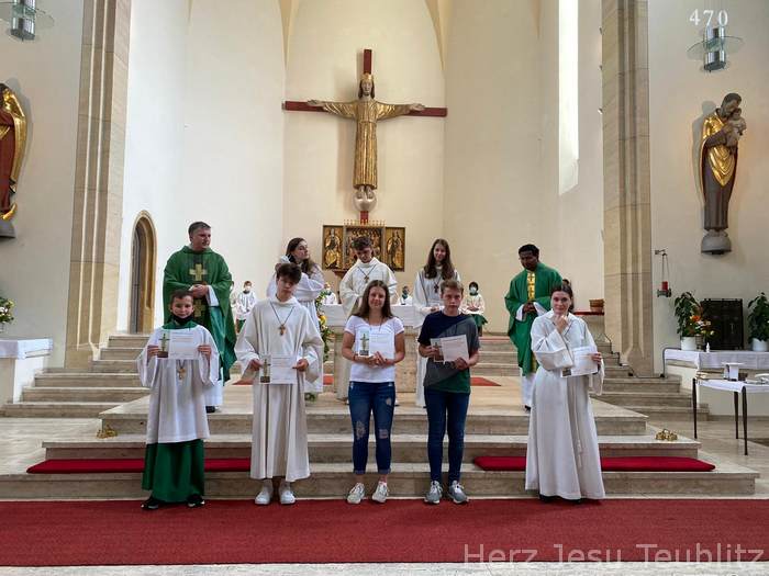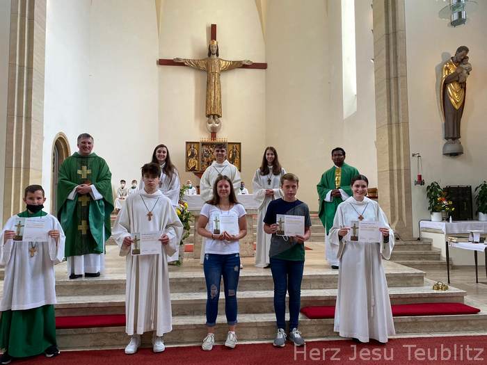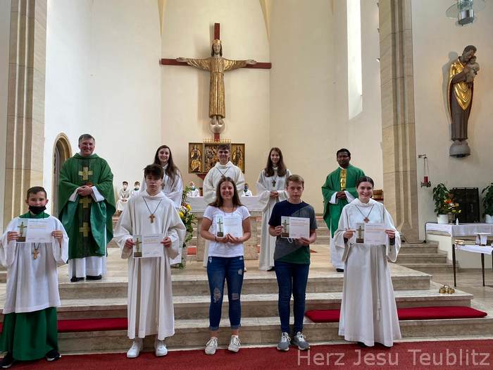 Ein großes Vergelt´s Gott gab es am letzten Sonntag vor den Sommerferien während der Eucharistiefeier in der Teublitzer Pfarrkirche. Denn altgediente Ministranten wurden verabschiedet. Nach der Predigt bedankten sich Pfarrer Michael Hirmer und Kaplan William Akkala und überreichten Urkunden, die an den Ministrantendienst in Teublitz dankbar erinnern sollen.