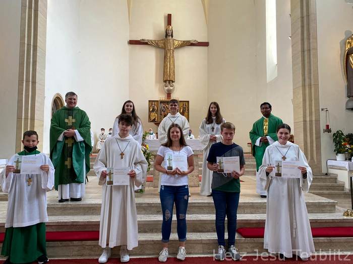 Nach drei Jahren beendete Max Kammerl seinen Dienst am Altar, weil seine Familie umgezogen ist. Johannes Kargerer hängst nach sieben Jahren sein Ministrantengewand an den Nagel. Lea Götz und Tim Glötzl ministrieren sieben Jahre. Lea Götz leitete davon drei Jahre eine Ministrantengruppe. Sieben Jahre war Sophia Niederalt Gruppenleiterin und zwölf Jahre Ministrantin. Auch der Häuptling der Ministranten, Oberministrant Matthias Zankl wurde aufgrund einer Verletzung in Abwesenheit verabschiedet. Er war elf Jahre Ministrant, davon sechs Jahre Gruppenleiter und zwei Jahre Oberministrant.