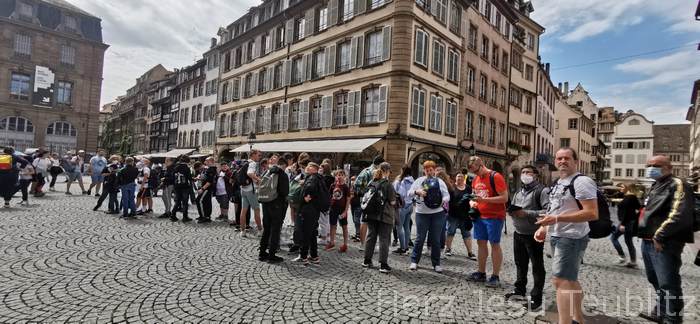 Bevor es über den Rhein ins franzöische Straßburg gehen konnte, hieß es erst einmal "in Reih und Lied anstehen". Doch der Corona-Test war für alle die einzige negative Angelegenheit des Tages.