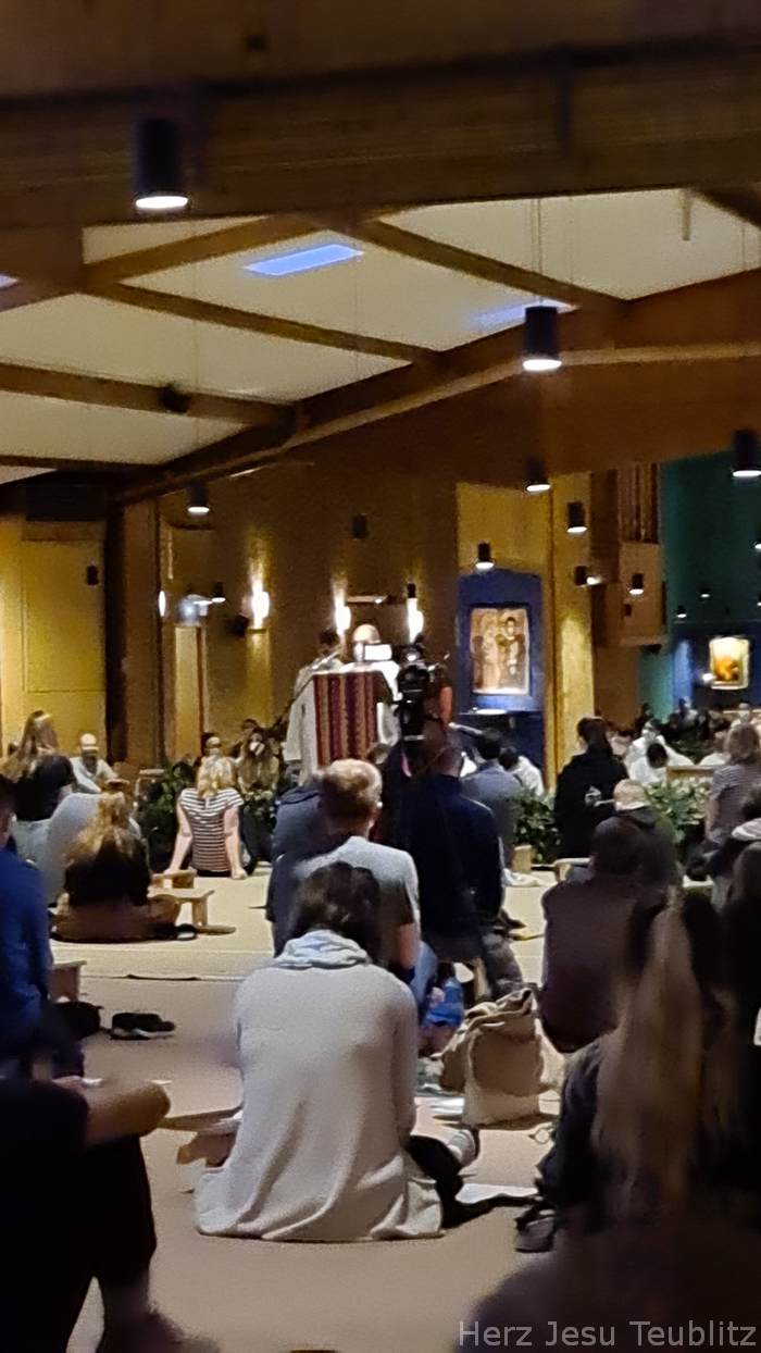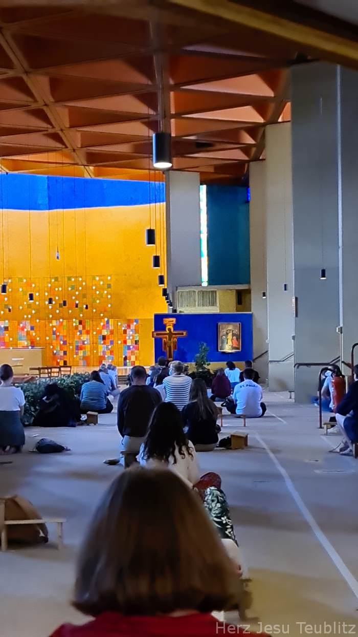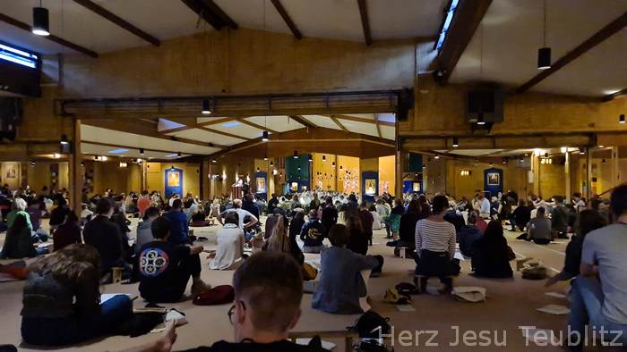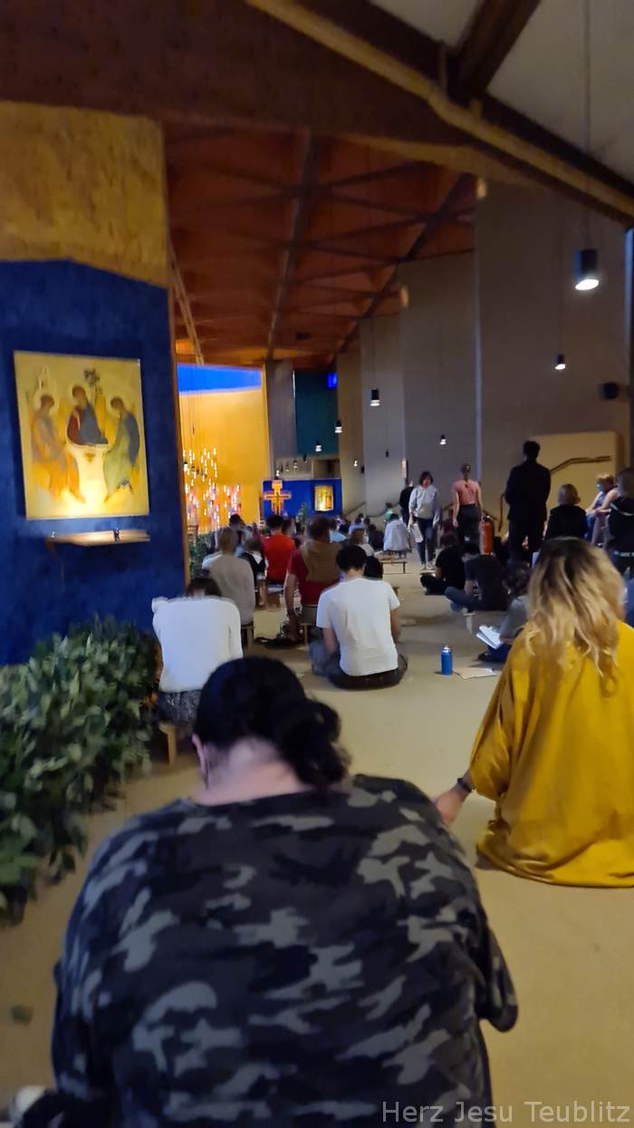 Neben der Arbeit und den Gesprächsgruppen sind die gemeinsamen Gebete das Herzstück von Taizé. Dreimal täglich, am Morgen, am Mittag und am Abend, läuten die Glocken der Kirche. Dann strömen die jungen Menschen in die Kirche, die eher einer großen Halle ähnelt. Kirchenbänke sucht man dort vergebens. Man sitzt auf den Boden oder Gebetshockern und singt die mittlerweile weltbekannten Taizé-Lieder, Wiederholgesänge, die zur Meditation und zur Begegnung mit Gott einladen. Für die Teublitzer Taizé-Neulinge war das Zentrum der Gebete verblüffend: „Einfach nur Stille. In der man nichts tun oder denken muss, sondern einfach nur Gott wirken lassen soll.“