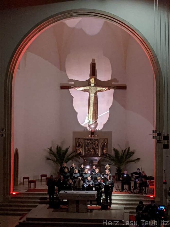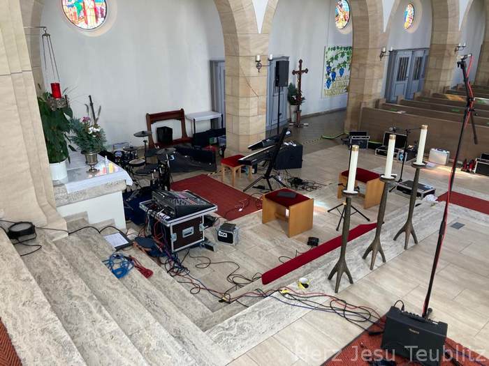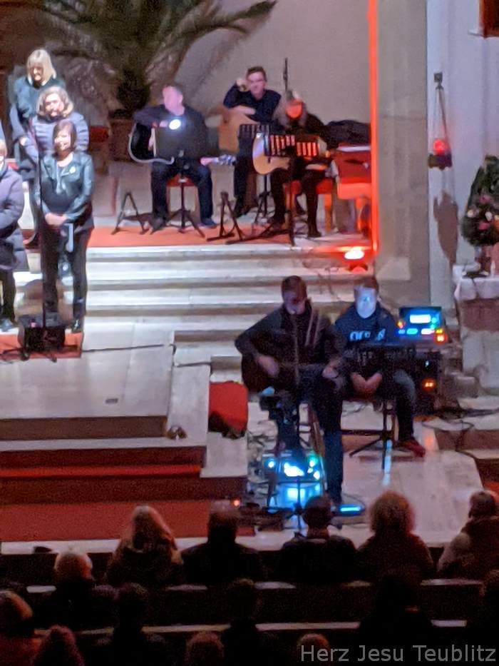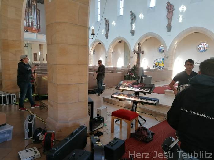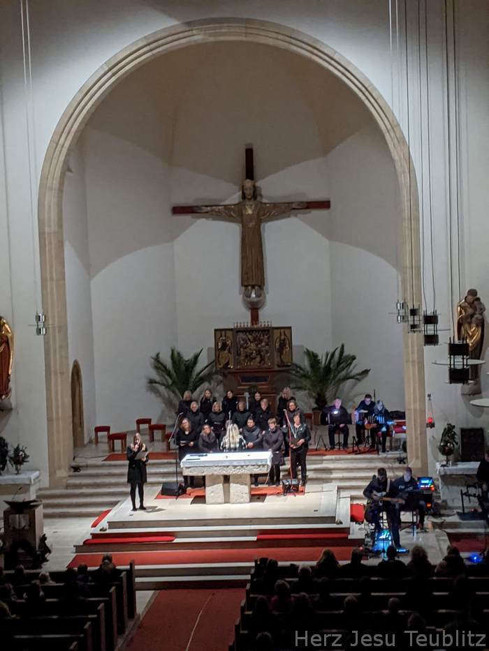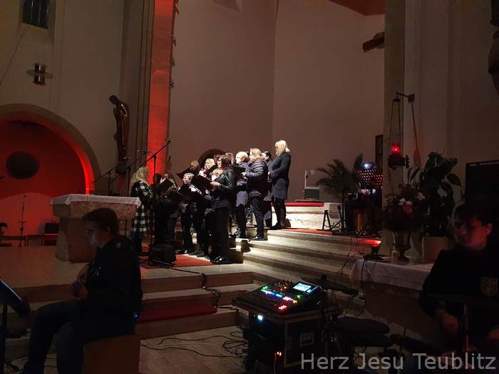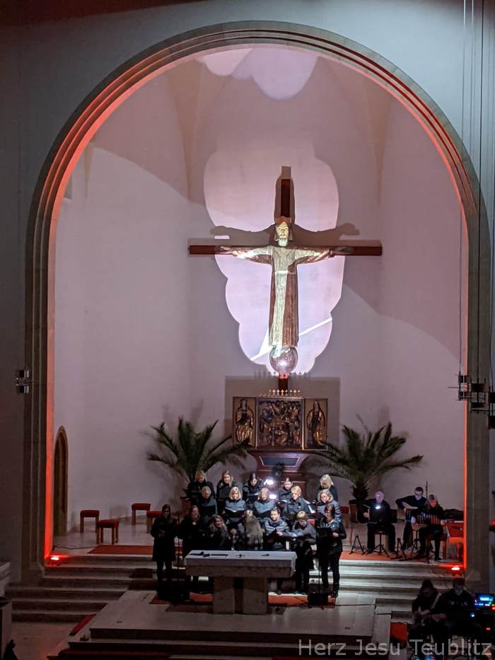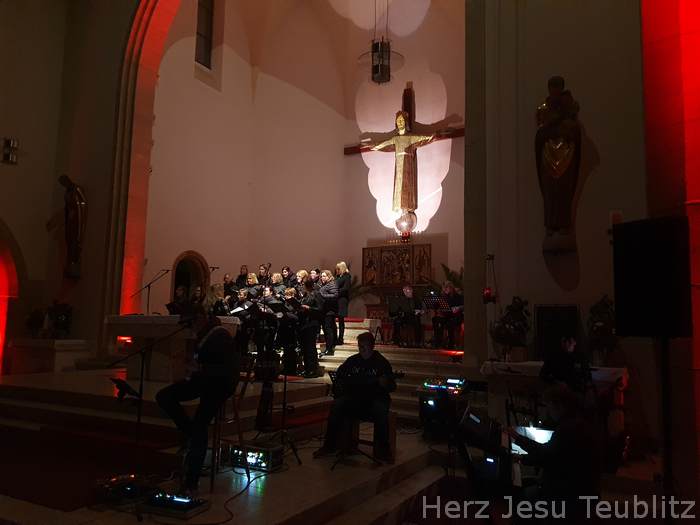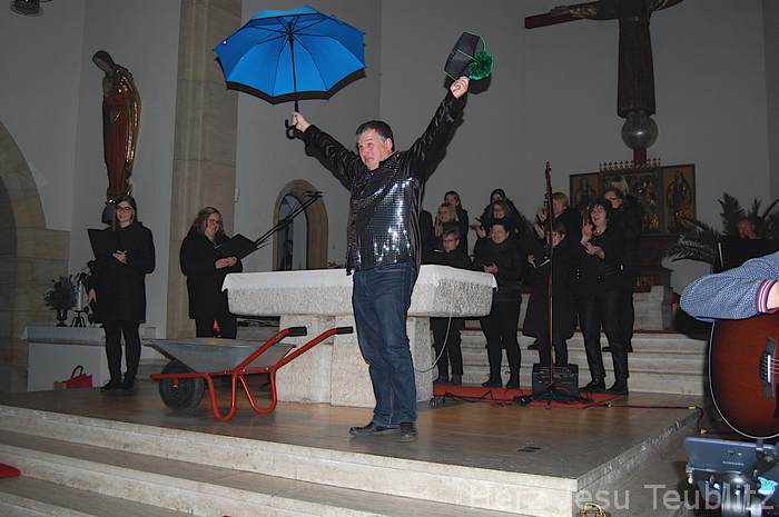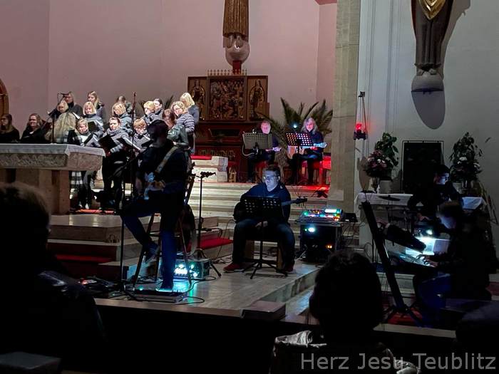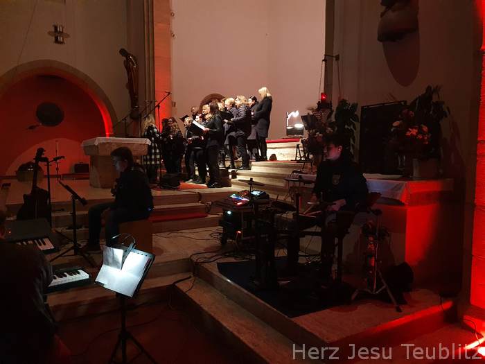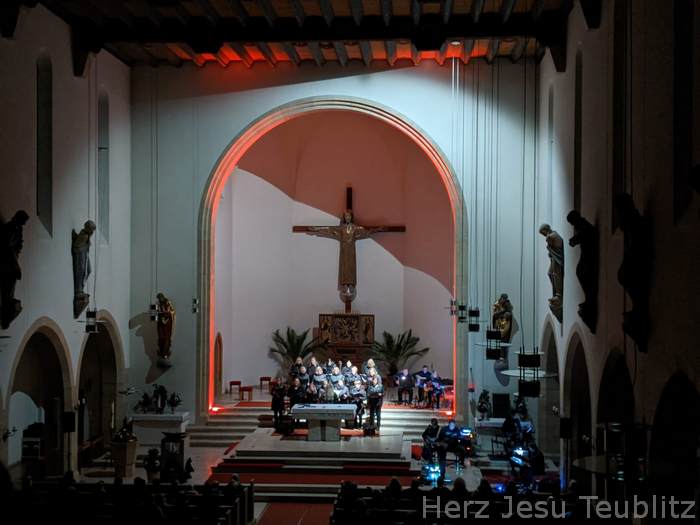 Alles begann während der Ausgangssperre im Winter 2021, als Teublitz gerade hart vom Corona-Virus getroffen war. „Wie können wir den Menschen Hoffnung schenken?“, fragte man sich immer wieder in der Pfarrgemeinde Herz Jesu. Eine Antwort darauf gab Kolpingsvorsitzende Martina Förster: „Gerade jetzt holen wir die Menschen zusammen zu einem gemeinsamen Projekt, das es so noch nie gegeben hat.“ Das Projekt war ein Musical. Auch wenn Anfangs noch nicht klar war, was es sein soll und wer alles mitmachen wird: „Ich habe da einfach auf den Heiligen Geist vertraut.“, lächelt die Martina Förster, die gut in der Pfarrgemeinde Teublitz vernetzt ist. Begeistert von ihrer Idee waren schließlich der Gemeindechor Herz Jesu unter Leitung von Dagmar Gawinowski, die Gitarrengruppe der Kolpingsfamilie und die Band „Die Secklwetzer“, in der zwei Ministranten mitrocken. „Anfangs wurden online Ideen ausgetauscht und sobald es möglich war, traf man sich in Kleingruppen.“, schildert Martina Förster den weiteren Verlauf des Projekts, „Schließlich trug der Pfarrer mit etwas skeptischer Miene den Termin ein und stellte uns sogar die Pfarrkirche zur Verfügung.“